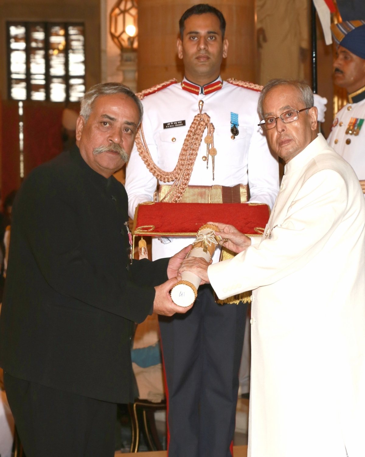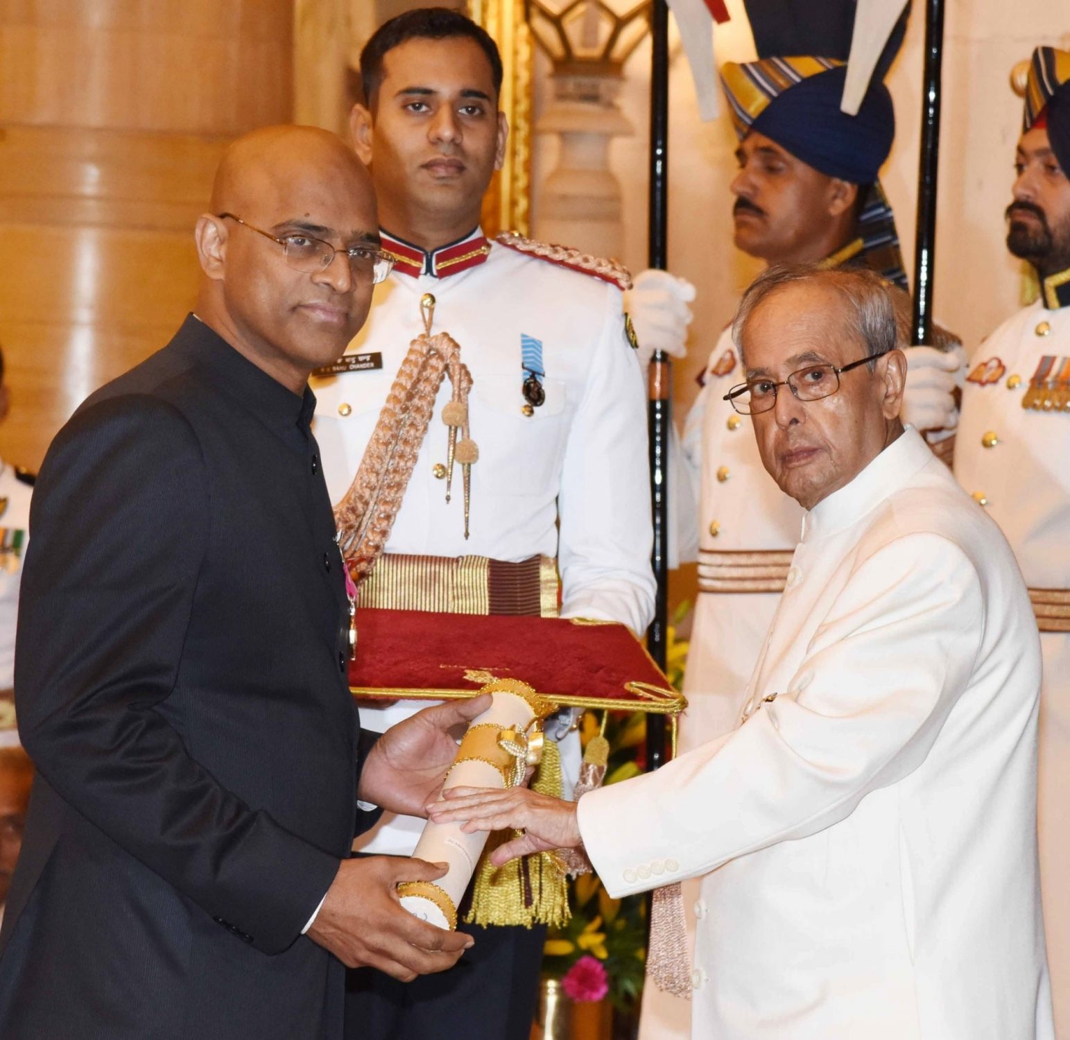 New Delhi: President Pranab Mukherjee presents the Padma Shri Award to Dr. Praveen Chandra, at a Civil Investiture Ceremony organised at Rashtrapati Bhavan, in New Delhi on March 28, 2016. (Photo: IANS/PIB)
