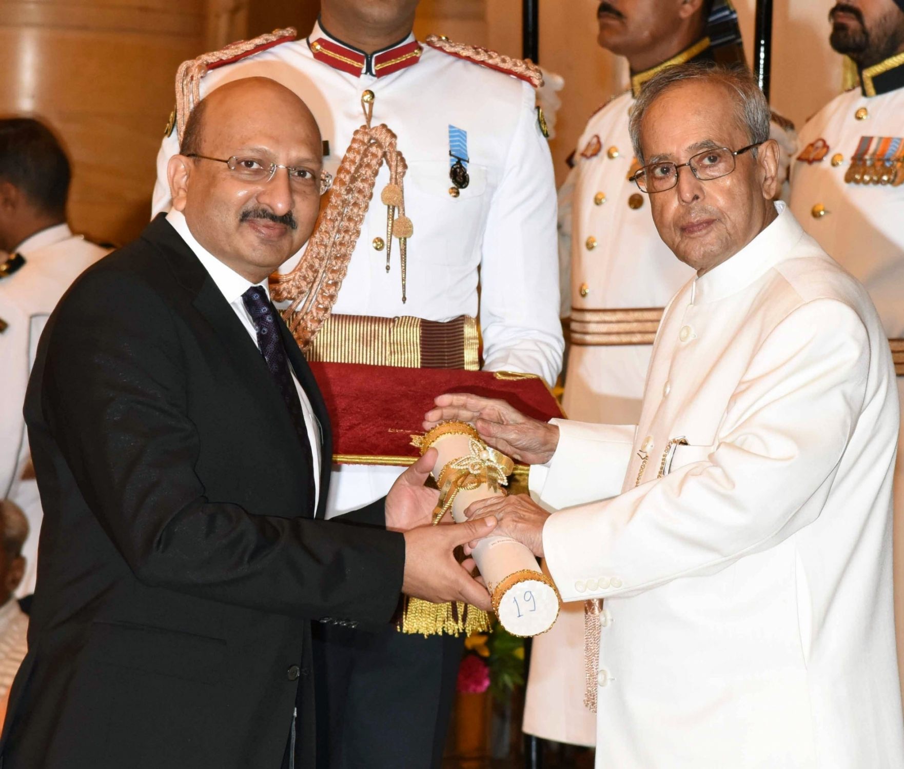 New Delhi: President Pranab Mukherjee presents the Padma Shri Award to Dr. Alla Gopala Krishna Gokhale, at a Civil Investiture Ceremony organised at Rashtrapati Bhavan, in New Delhi on March 28, 2016. (Photo: IANS/PIB)