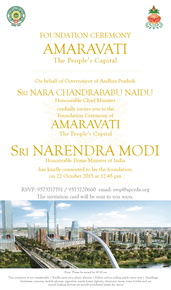Home » Politics » AP » Amaravati Foundation Cermony Invitation Amaravati Foundation Cermony Invitation Posted By: Raju Sagi October 12, 2015 Facebook Comments About Raju SagiMail Like this:Like Loading...