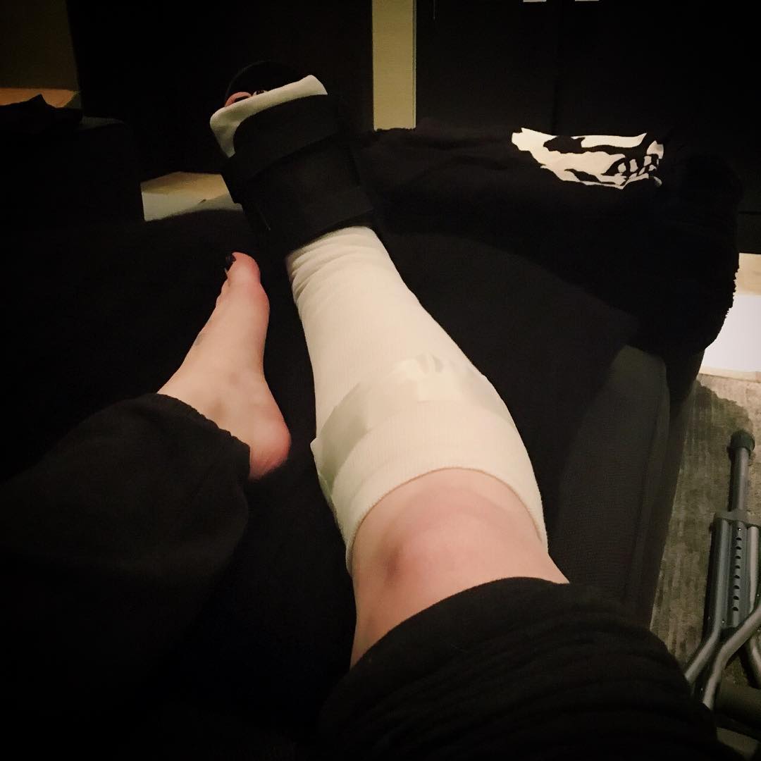 Sharing a photograph of her bruised and swollen foot on Instagram, she wrote: "All I want for Christmas is not to have a broken foot."