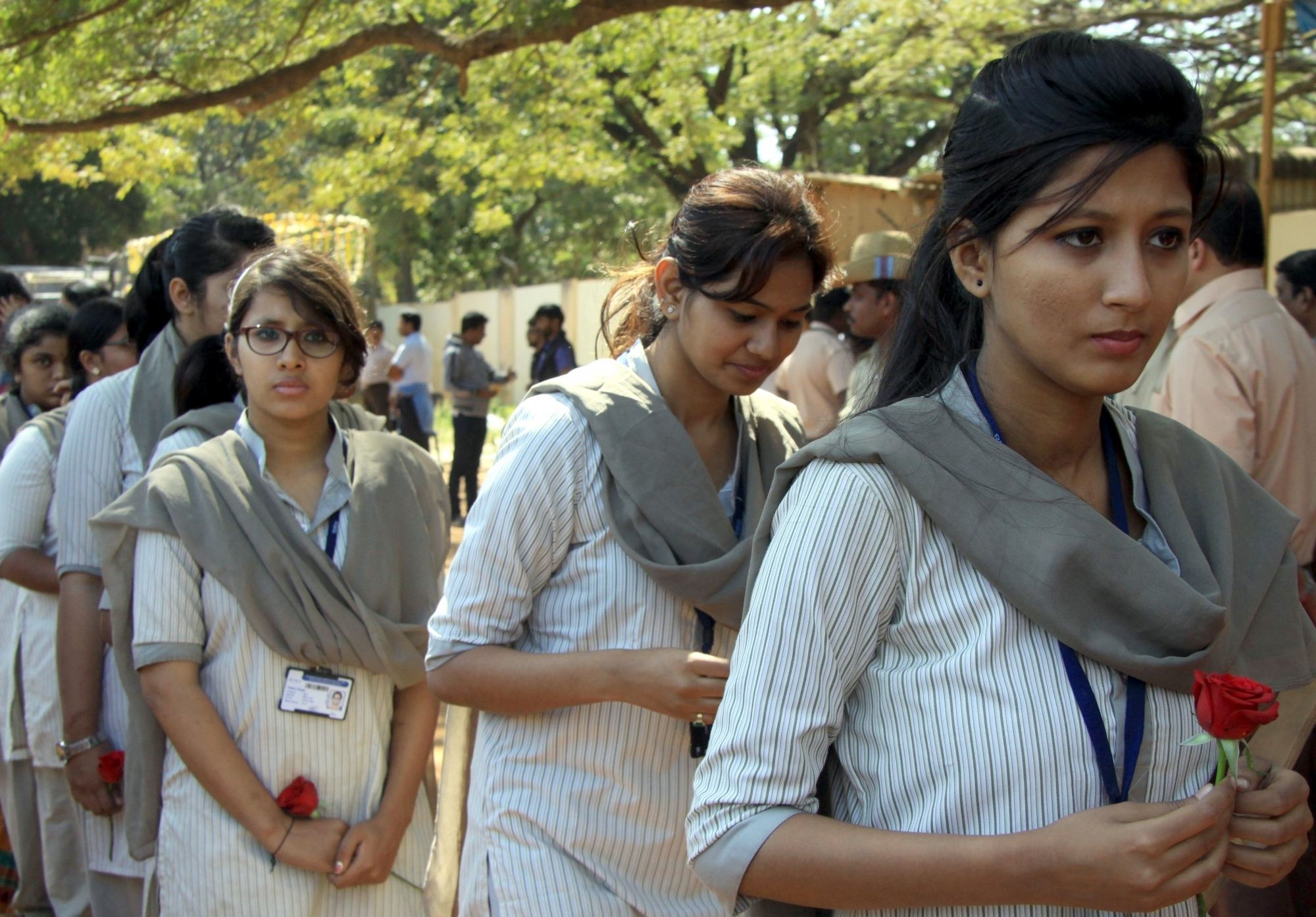 Bengaluru: School students pay homage to Niranjan Kumar, a Lieutenant Colonel of the National Security Guard who was killed while defusing a bomb during combing operations at Pathankot IAF base; in Bengaluru on Jan 4, 2016. (Photo: IANS)