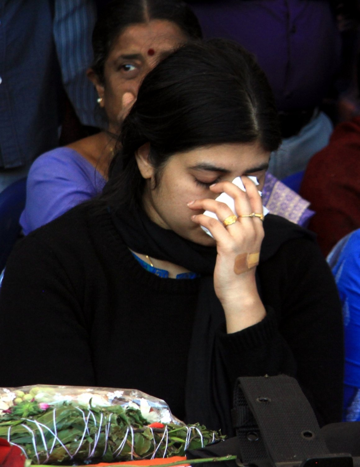 Bengaluru: The wife of Niranjan Kumar, a Lieutenant Colonel of the National Security Guard who was killed while defusing a bomb during combing operations at Pathankot IAF base at the funeral of her husband in Bengaluru on Jan 4, 2016. (Photo: IANS)