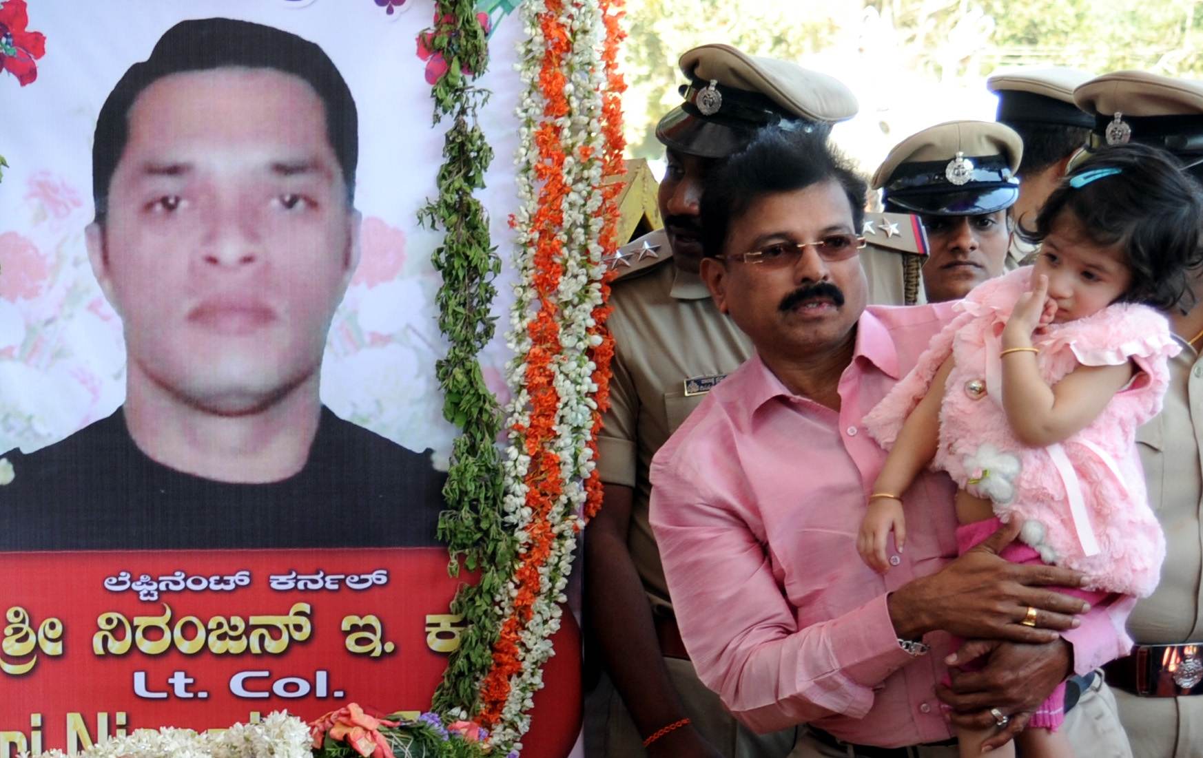 Bengaluru: The daughter of Niranjan Kumar, a Lieutenant Colonel of the National Security Guard who was killed while defusing a bomb during combing operations at Pathankot IAF base at the funeral of her father in Bengaluru on Jan 4, 2016. (Photo: IANS)