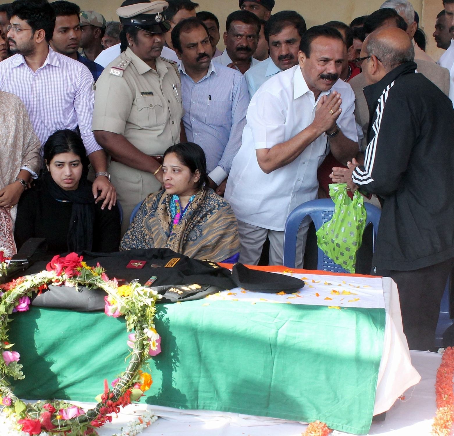 Bengaluru: The father of Niranjan Kumar, a Lieutenant Colonel of the National Security Guard who was killed while defusing a bomb during combing operations at Pathankot IAF base at the funeral of his son in Bengaluru on Jan 4, 2016. (Photo: IANS)