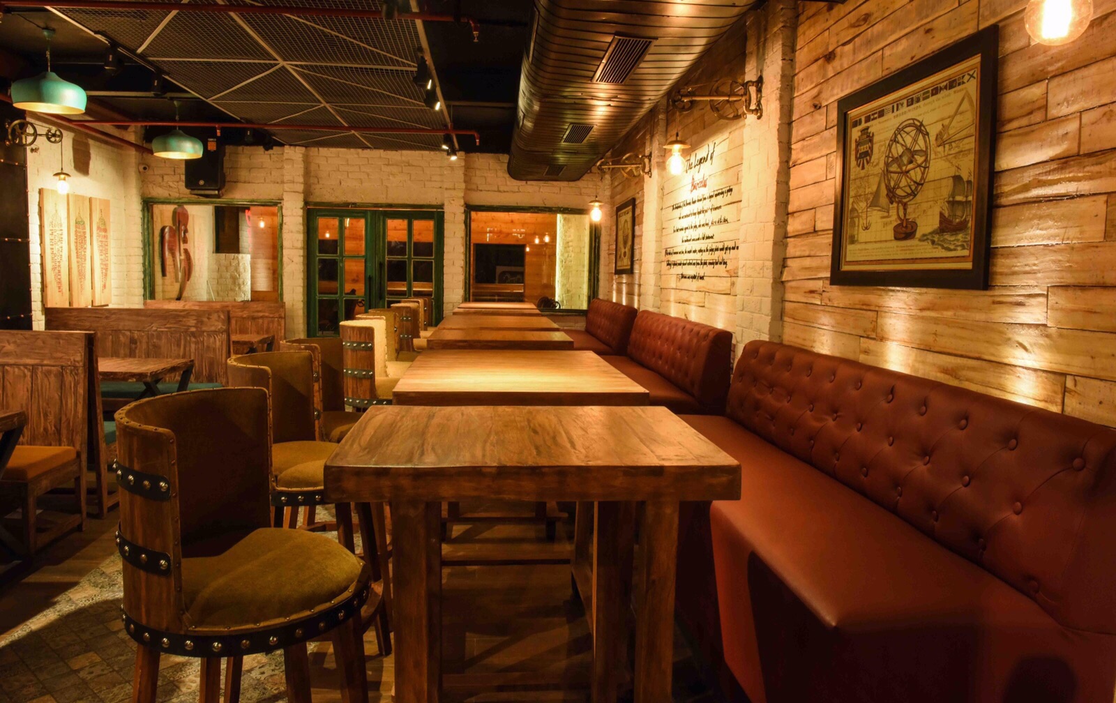 Spread over 3,600 sq ft, the outlet has raw and rustic interiors. Each wall of the restaurant depicts the story of Portugal which is very unique and attractive. Famous personalities and the different shades of Portugal have been painted on the walls. Also fascinating is a 3D painting of a Portuguese street, creating the authentic ambience of a Portugal town inside the restaurant.