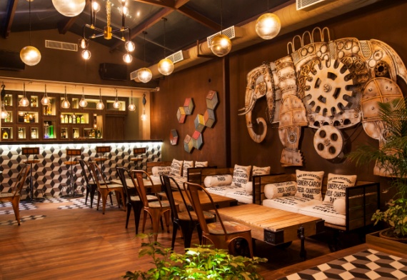 In fact, the interiors seemed to be an amalgamation of New York attic grunge and a Parisian cafe. It has been intelligently designed to serve both party-goers and families together at different levels of the outlet.