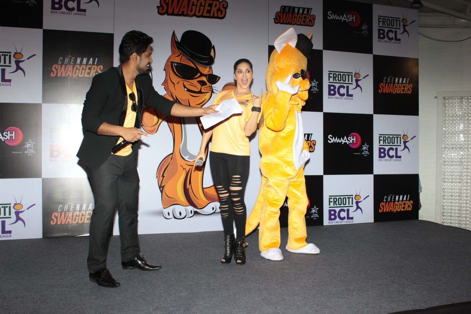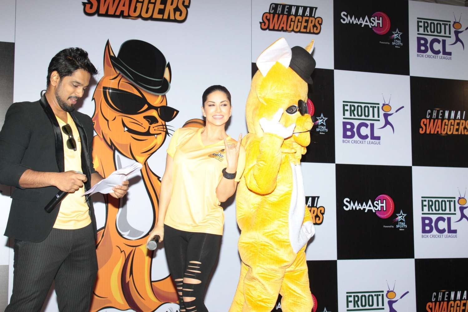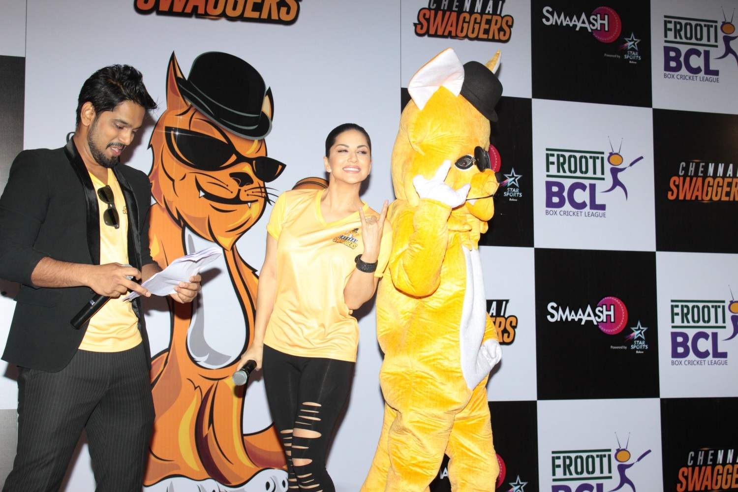 Mumbai: Actress and owner of Sunny Leone at an event for the Chennai Swaggers team for the Box Cricket League in Mumbai on Feb 22, 2016 . (Photo: IANS)