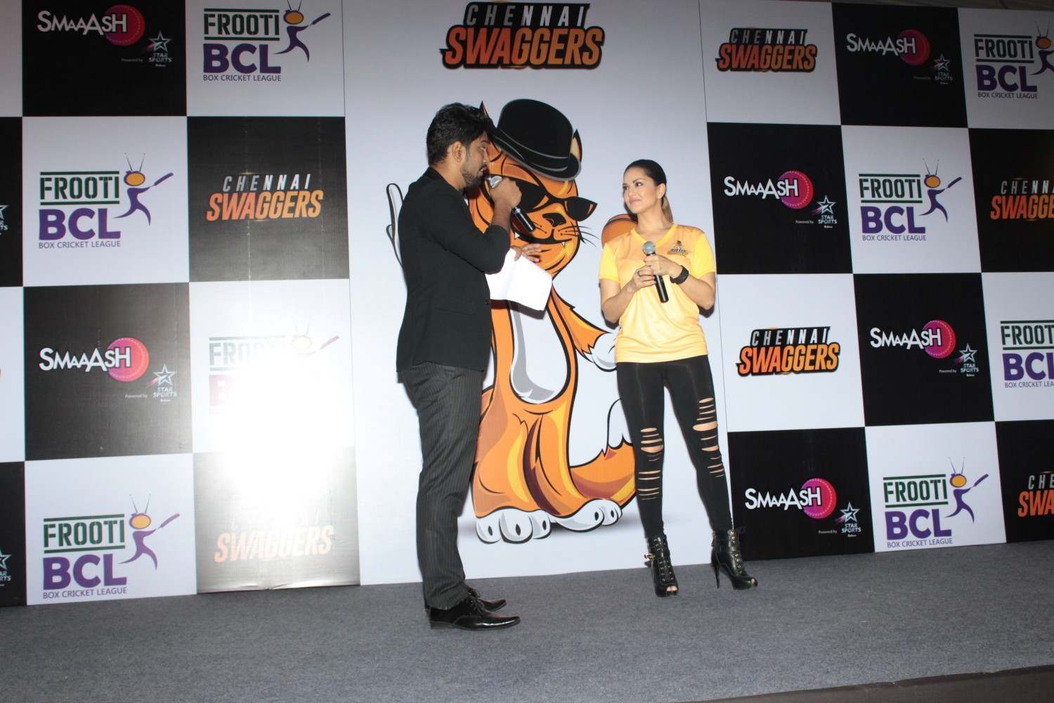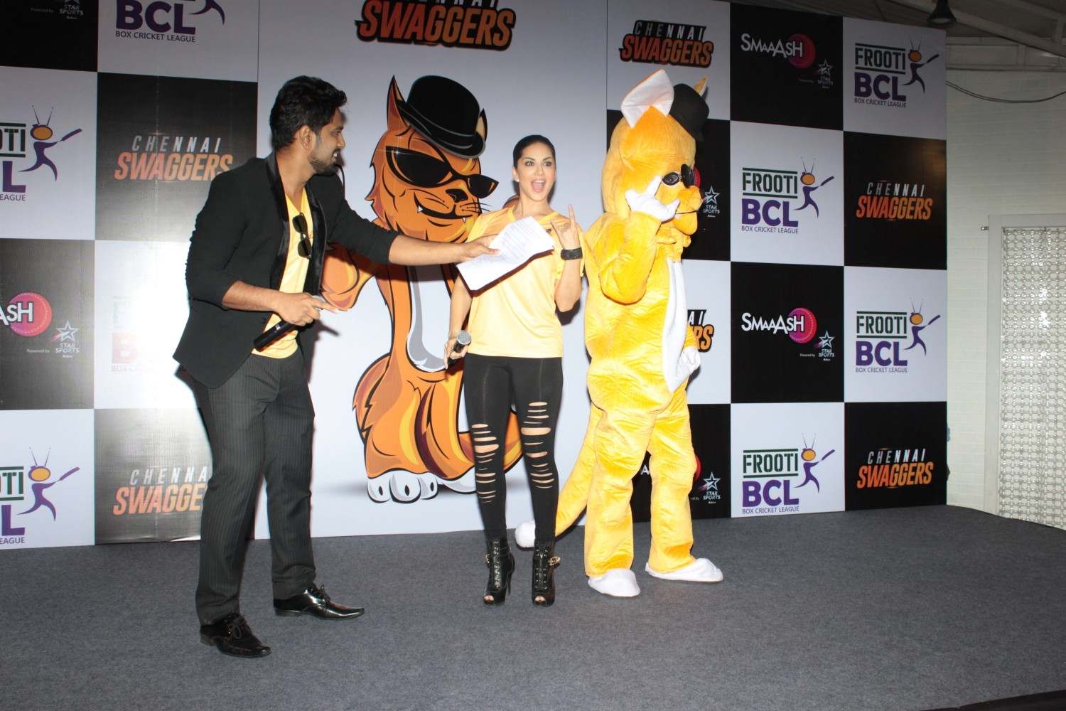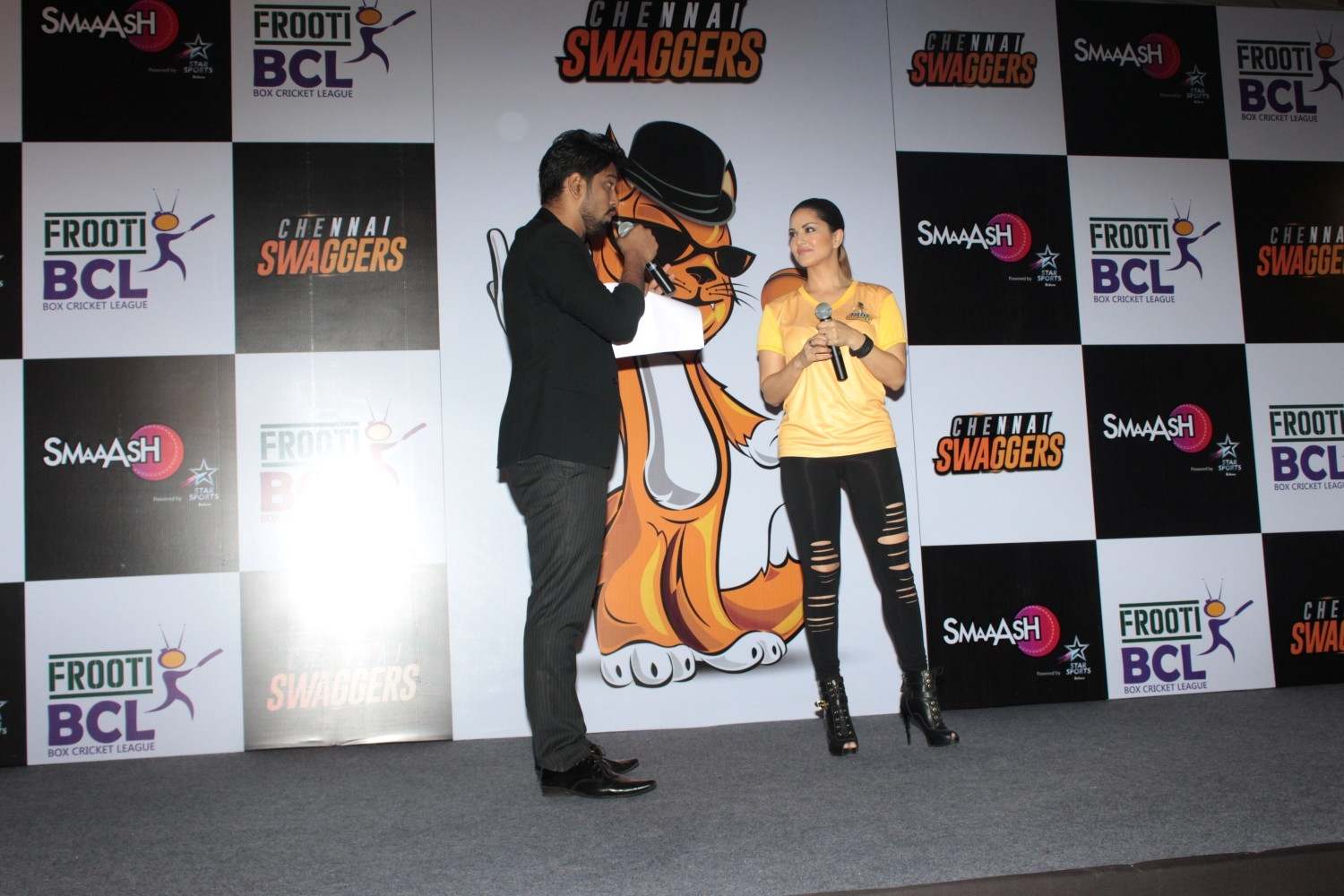 Mumbai: Actress and owner of Sunny Leone at an event for the Chennai Swaggers team for the Box Cricket League in Mumbai on Feb 22, 2016 . (Photo: IANS)
