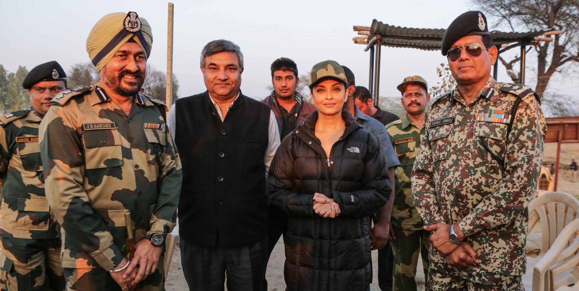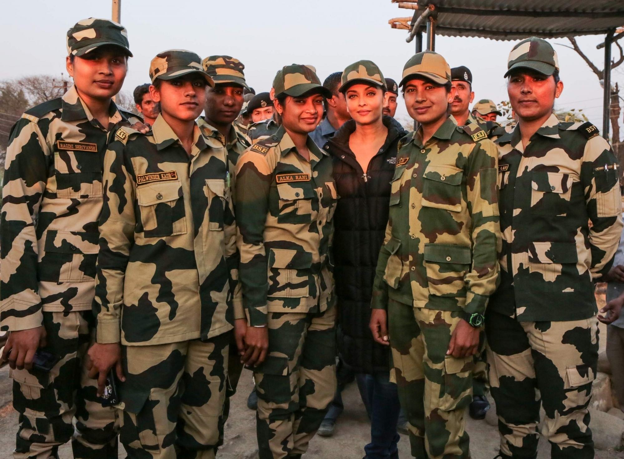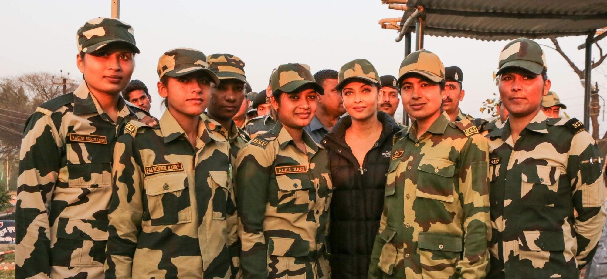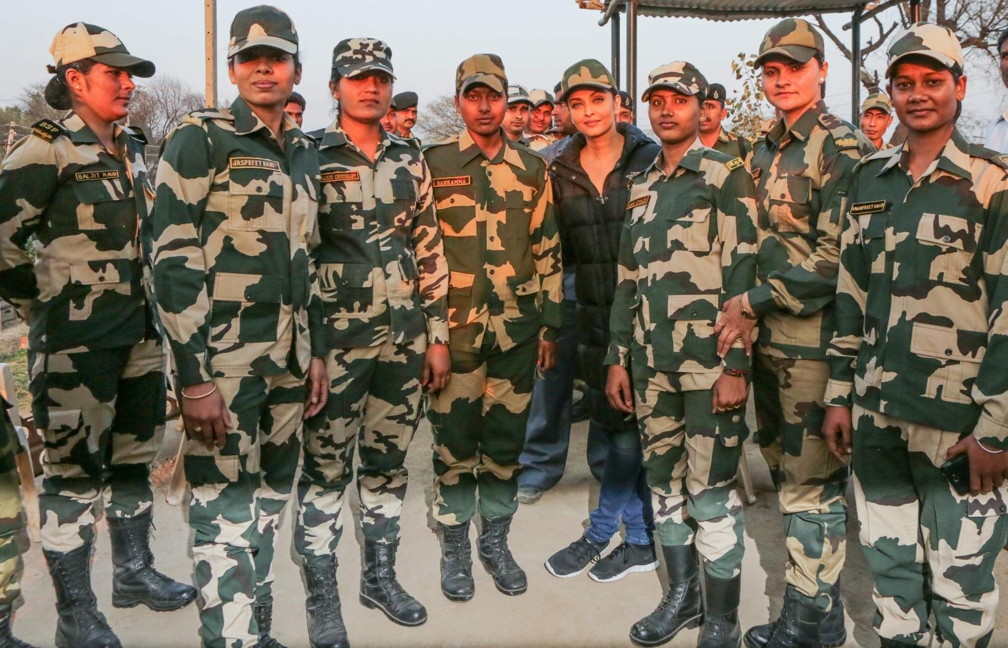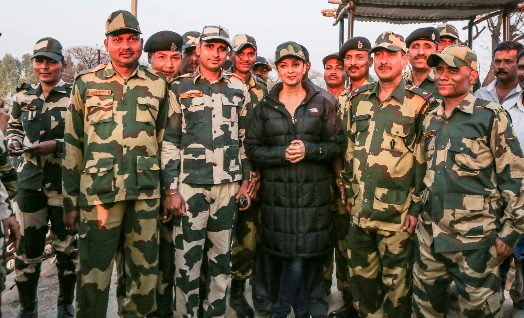 Mumbai: Actress Aishwarya Rai Bachchan, who is shooting for Omung Kumar`s Sarbjit in Amritsar was recently spotted spending time with the real heroes of the nation. The cast and crew who have been shooting real locations in Amritsar since last few days, lately shot for a major sequence at the border which was guarded by BSF soldiers. (Photo: IANS)