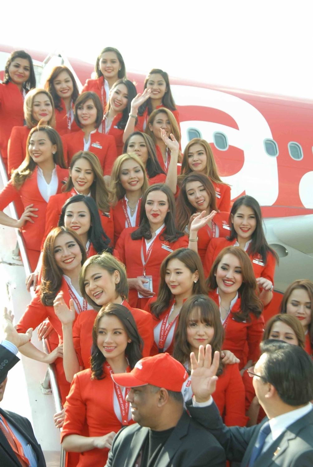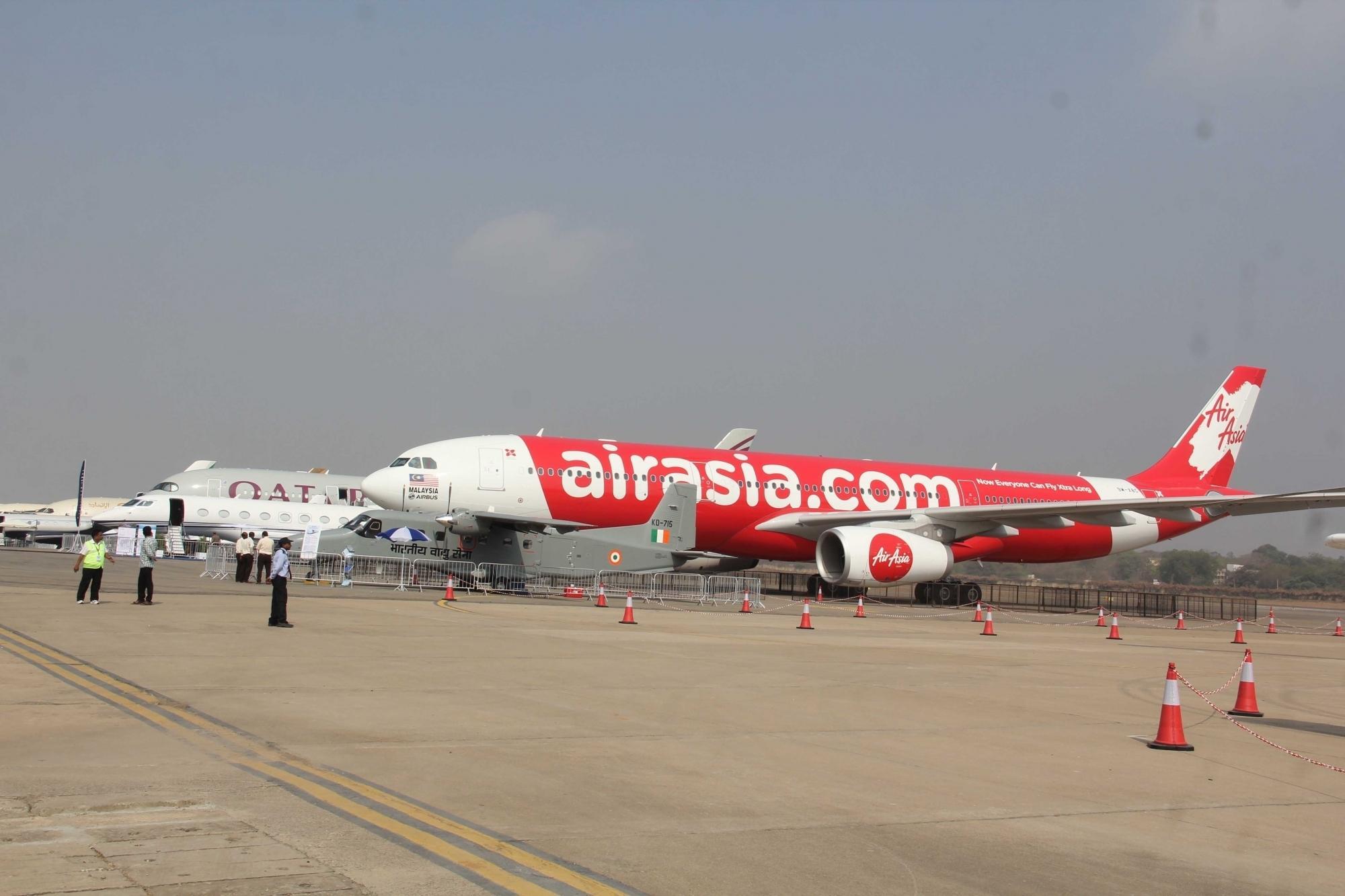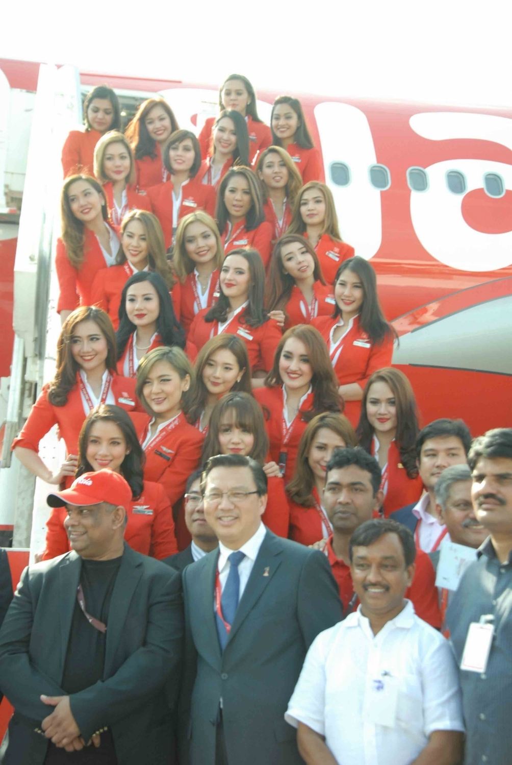 Hyderabad: AirAsia airhostesses during inauguration of the fifth edition of India Aviation 2016 in Hyderabad, on March 16, 2016. (Photo: IANS)
