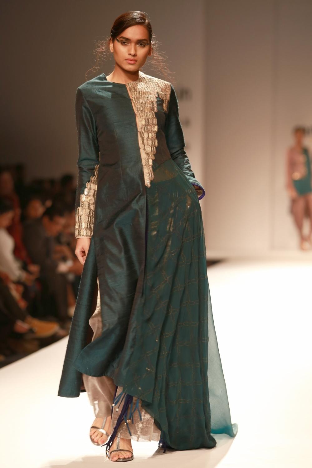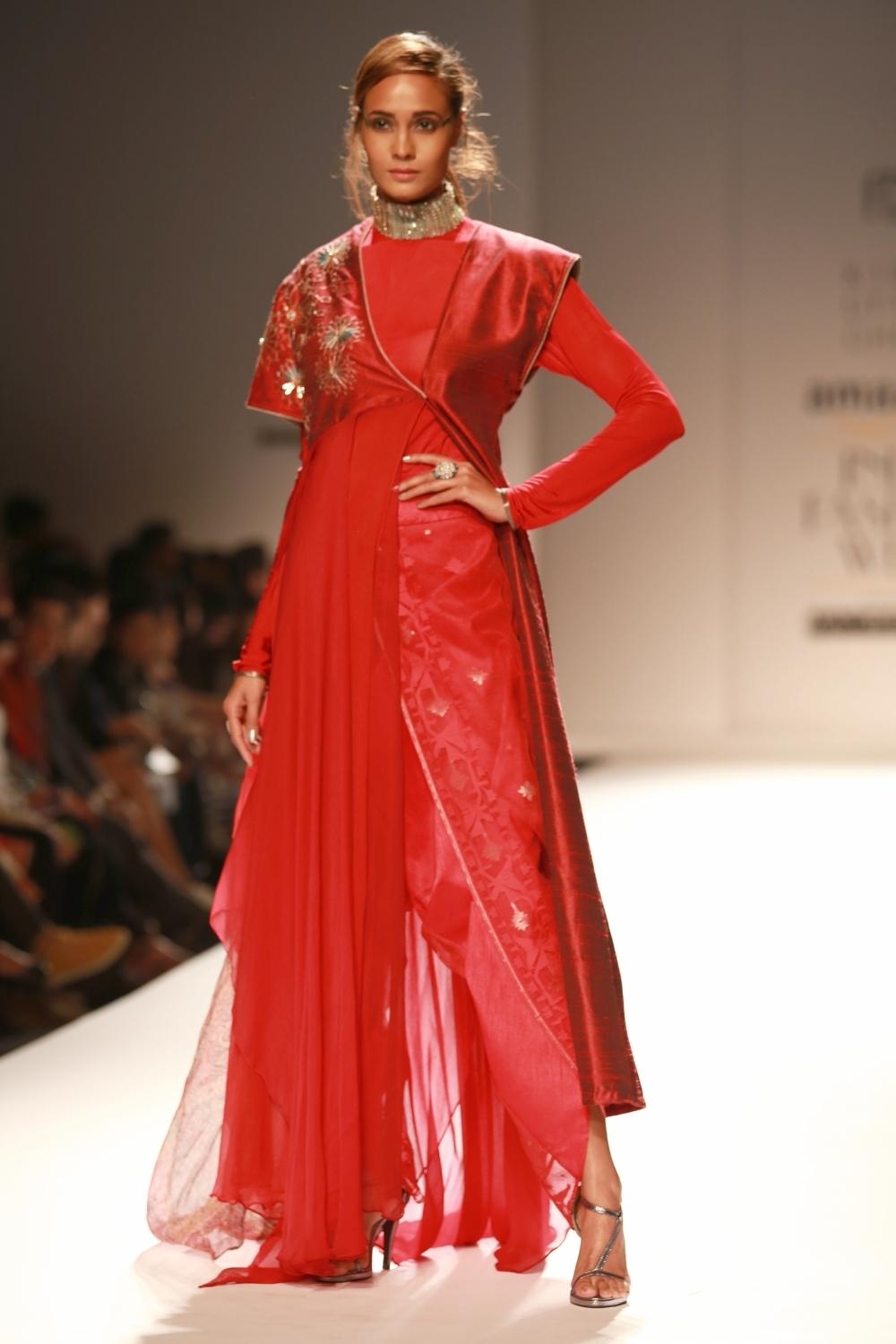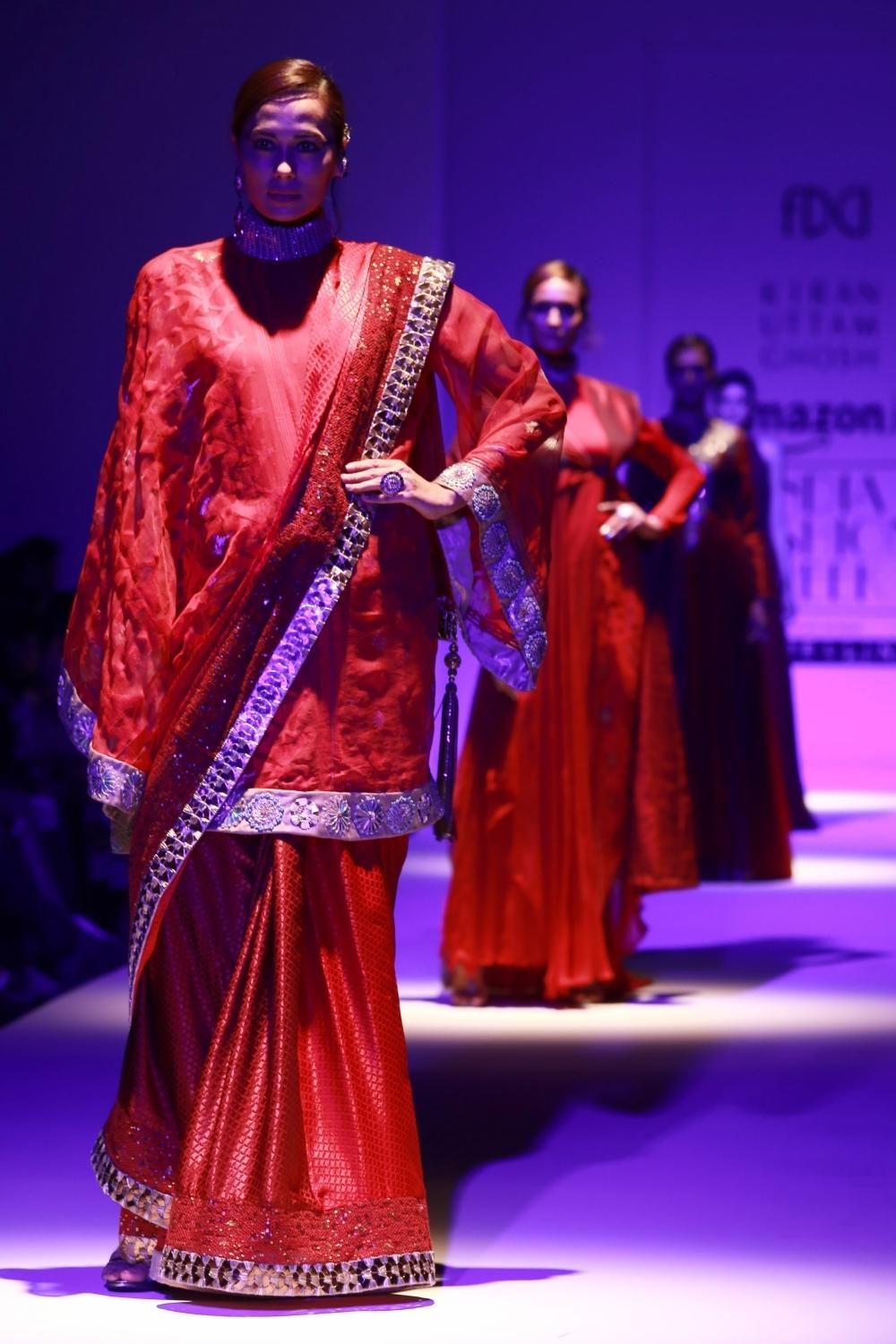 New Delhi: Models showcase the creations of fashion designer Kiran Uttam Ghosh at Amazon India Fashion Week 2016 in New Delhi, on March 16, 2016. (Photo: Amlan Paliwal/IANS)