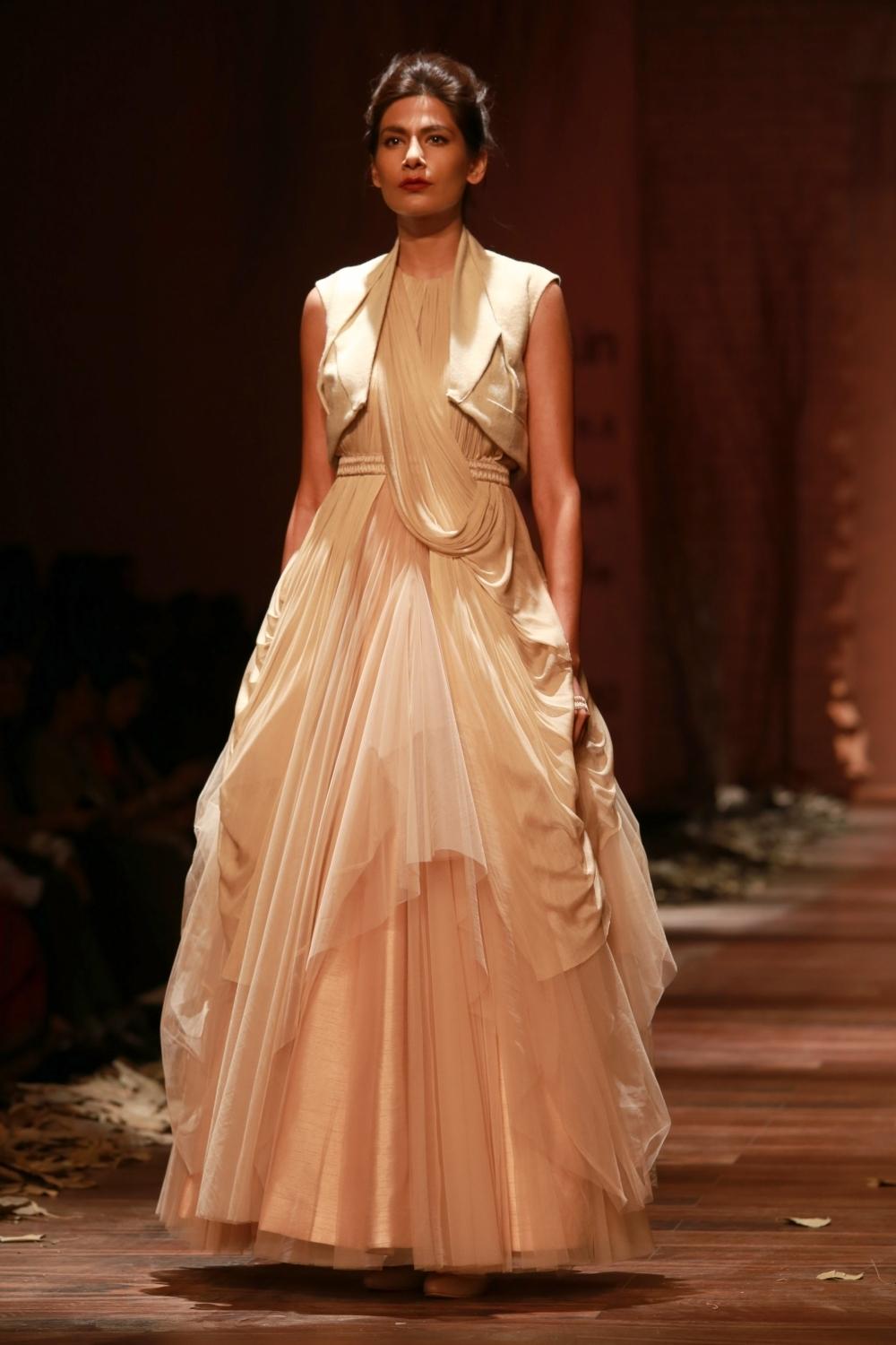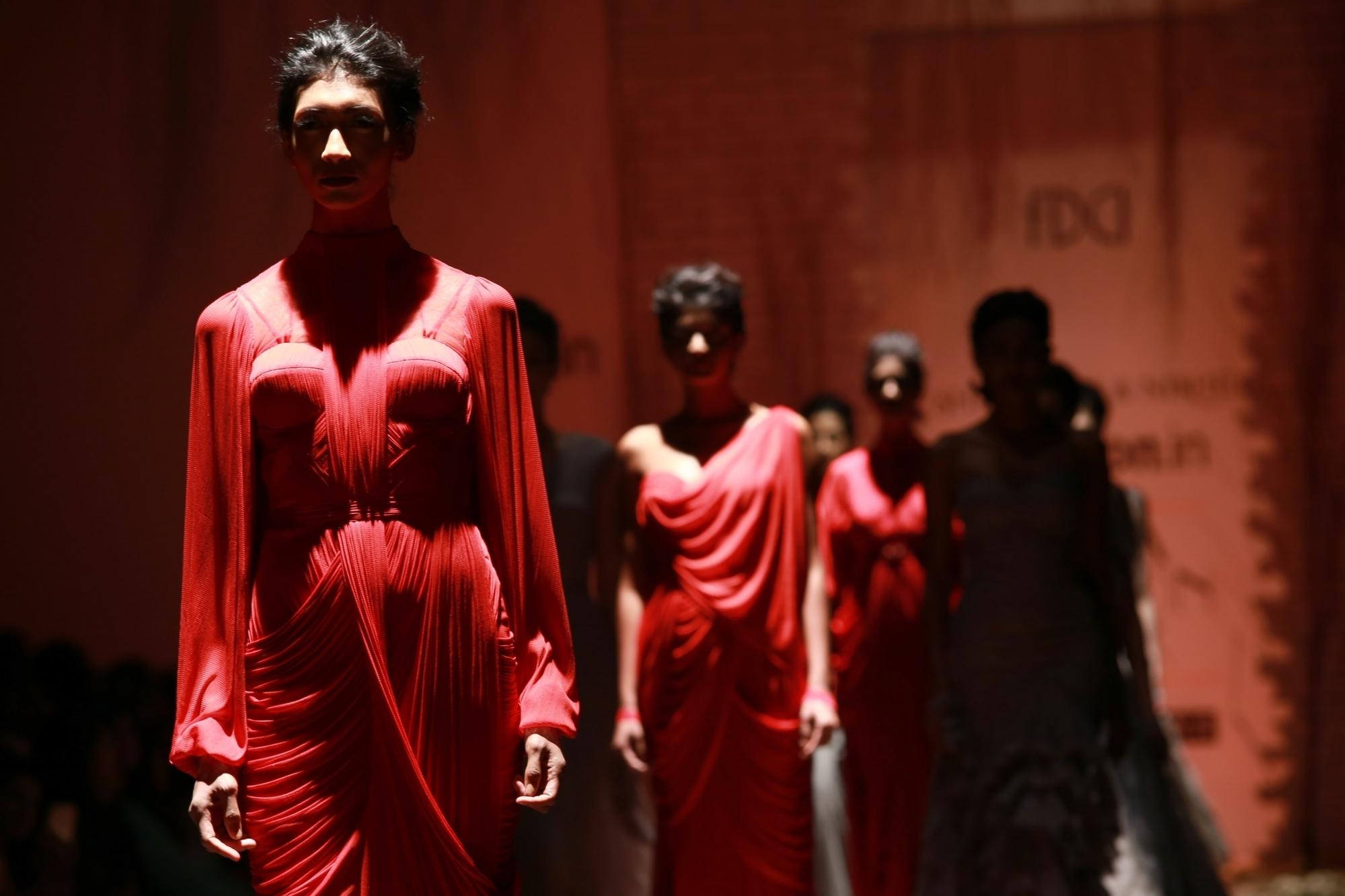 New Delhi: Models showcase the creations of fashion designer Shantanu and Nikhil at Amazon India Fashion Week 2016 in New Delhi, on March 16, 2016. (Photo: Amlan Paliwal/IANS)
