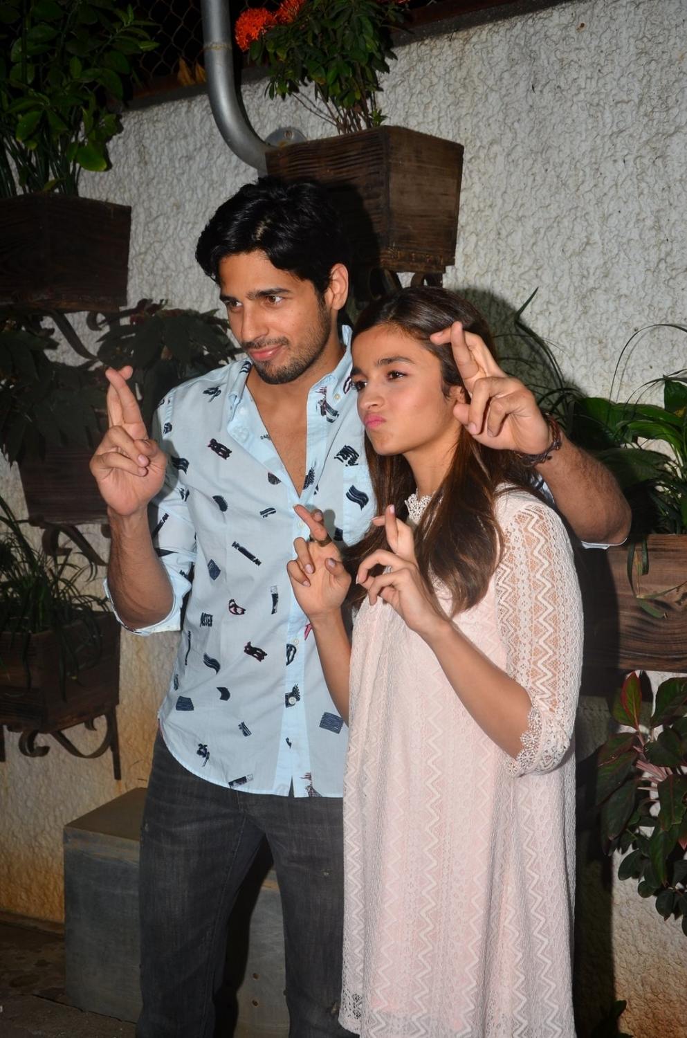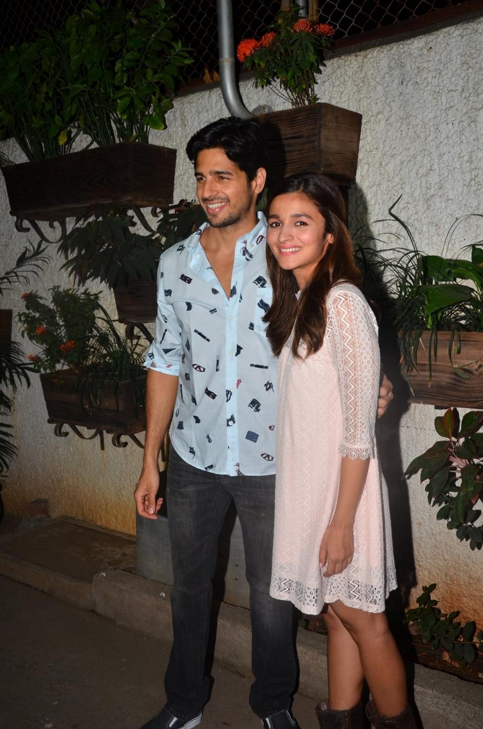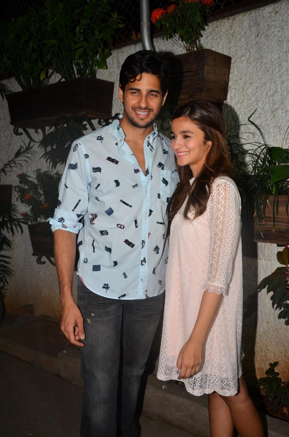 Mumbai: Actors Sidharth Malhotra and Alia Bhatt during the screening of film Kapoor and Sons in Mumbai, on March 17, 2016. (Photo: IANS)