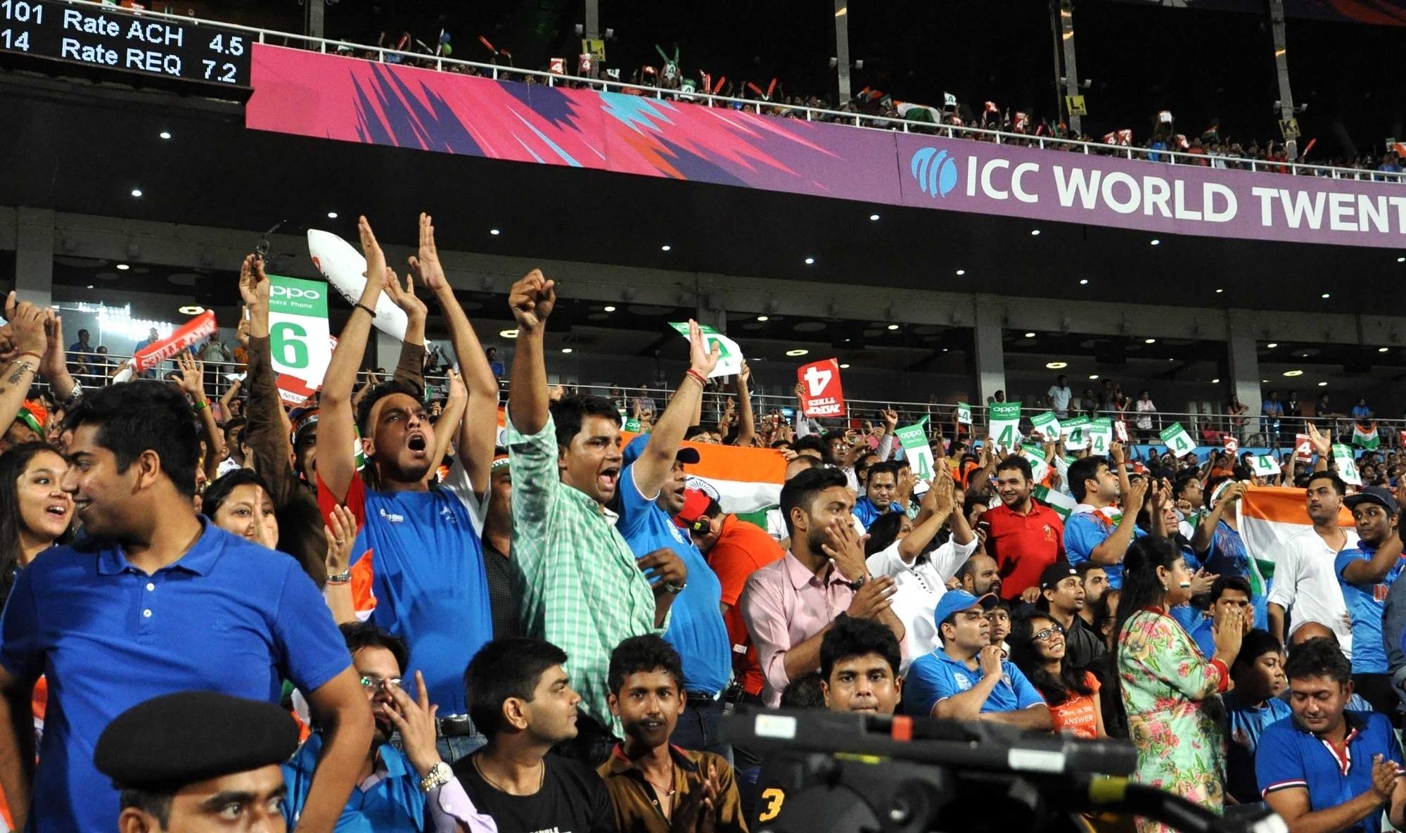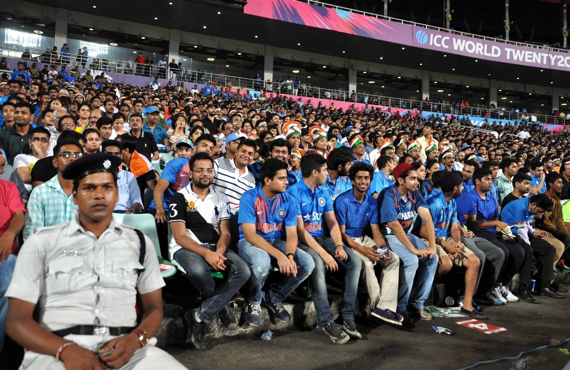 Kolkata: Indian fans cheer during the ICC WT20 2016 match between India and Pakistan at Eden Gardens in Kolkata on March 19, 2016. (Photo: Kuntal Chakrabarty/IANS)
