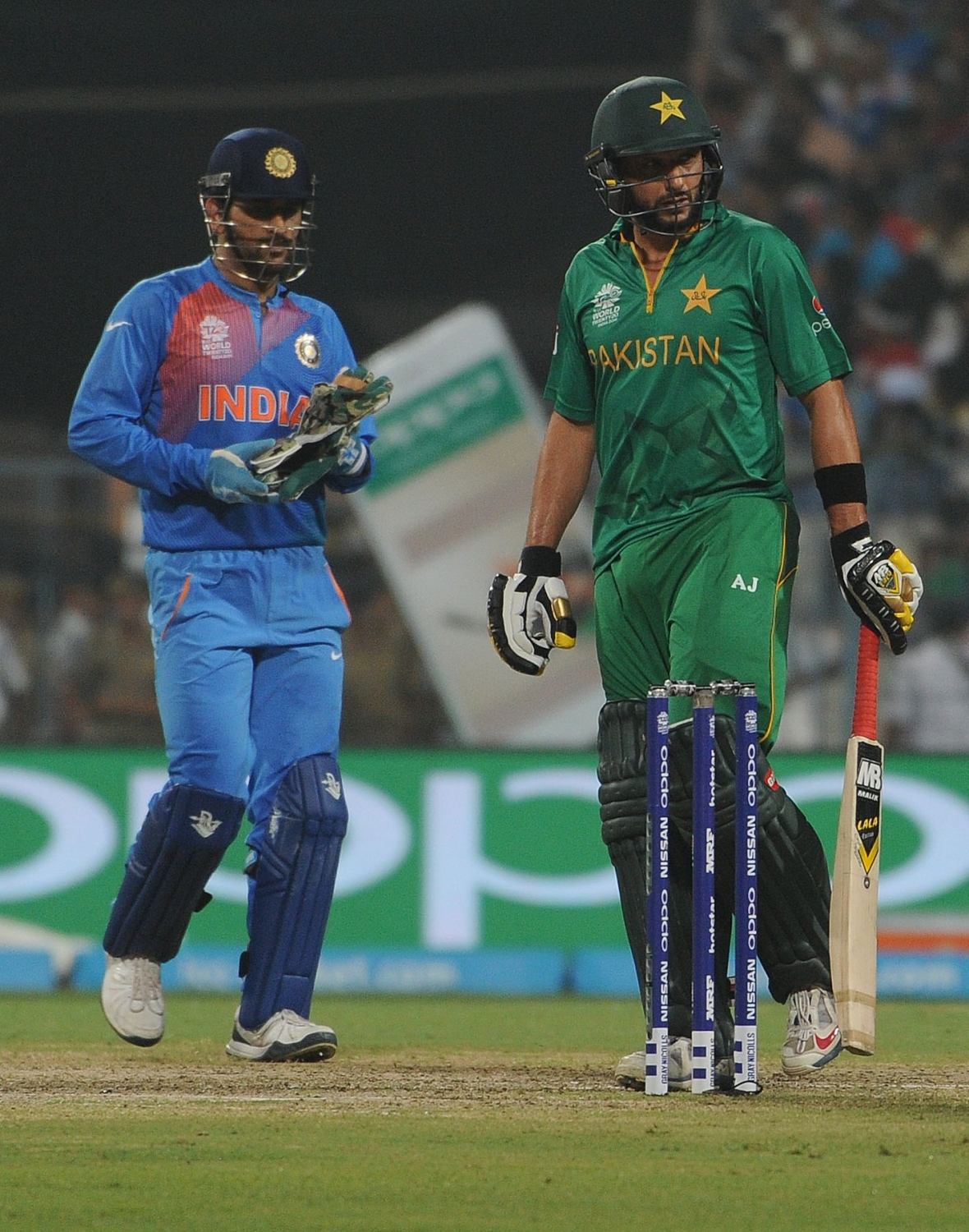 Kolkata: Pakistani players congratulate Indian batsmen Virat Kohli and MS Dhoni during the ICC WT20 2016 match between India and Pakistan at Eden Gardens in Kolkata on March 19, 2016. (Photo: Kuntal Chakrabarty/IANS)