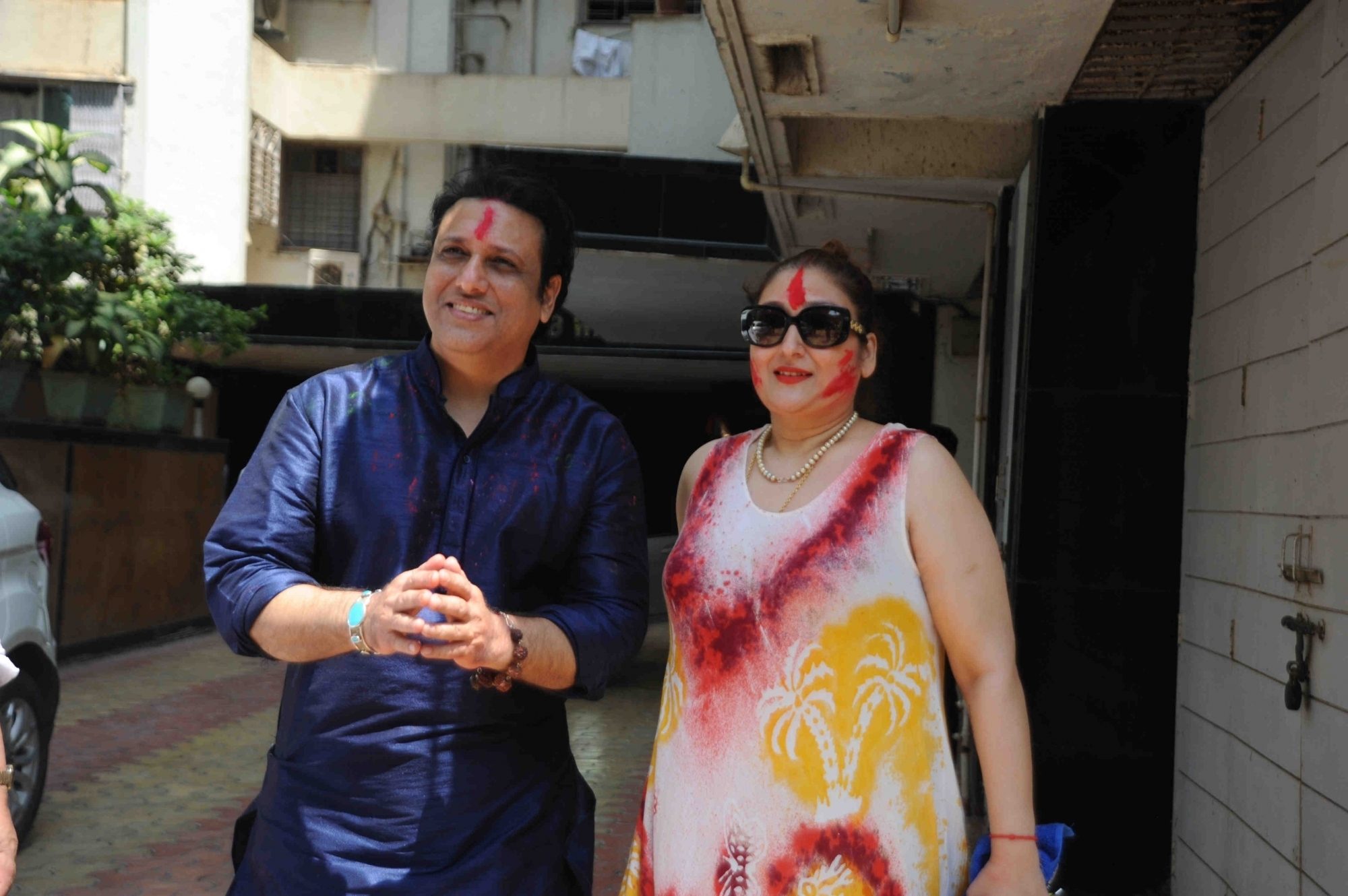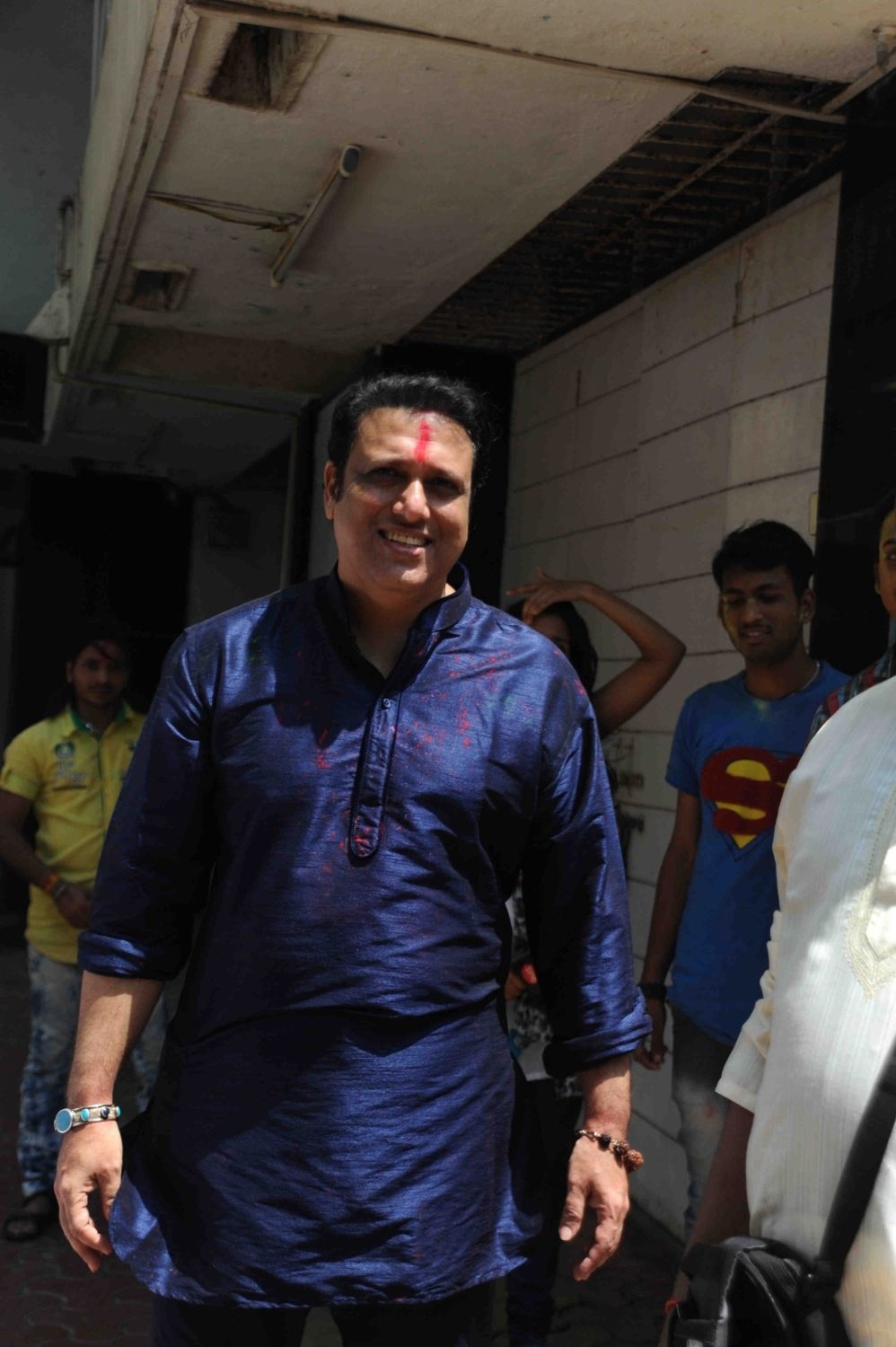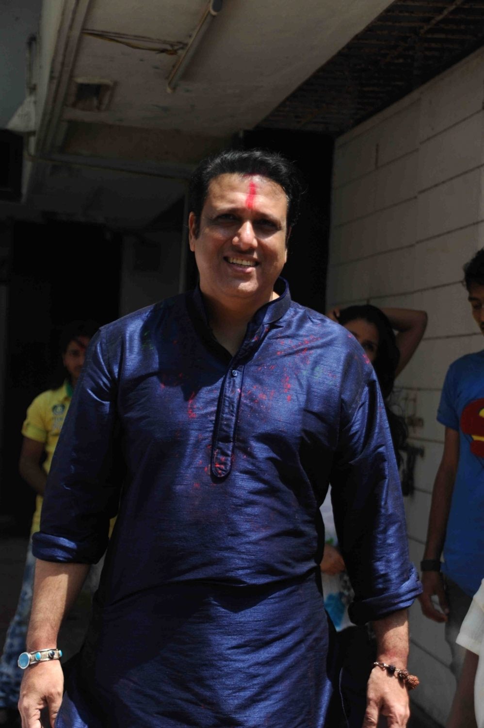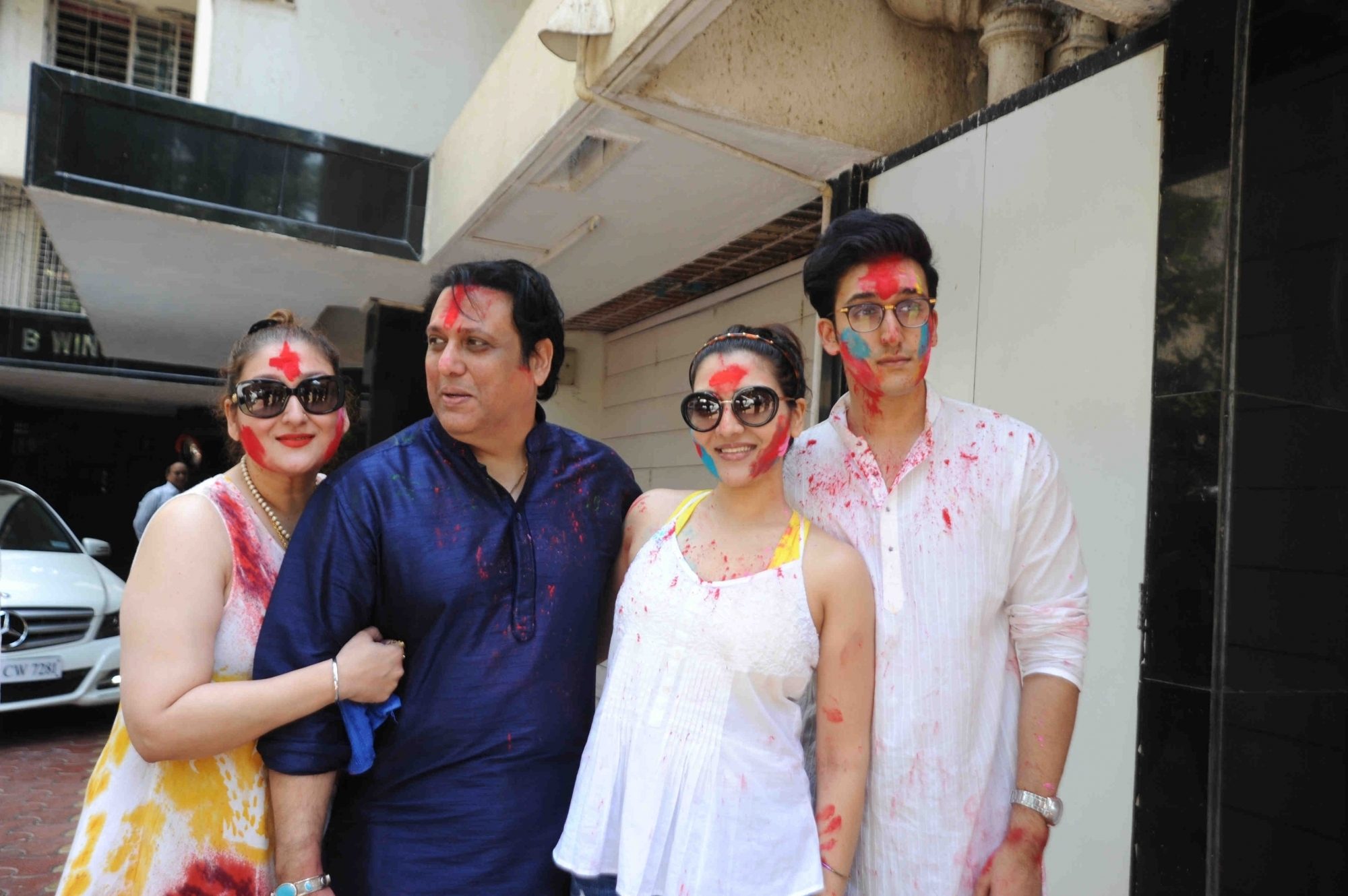 Mumbai: Actor Govinda celebrates Holi with his family at his residence in Mumbai on Thursday, March 24, 2016. (Photo: IANS)