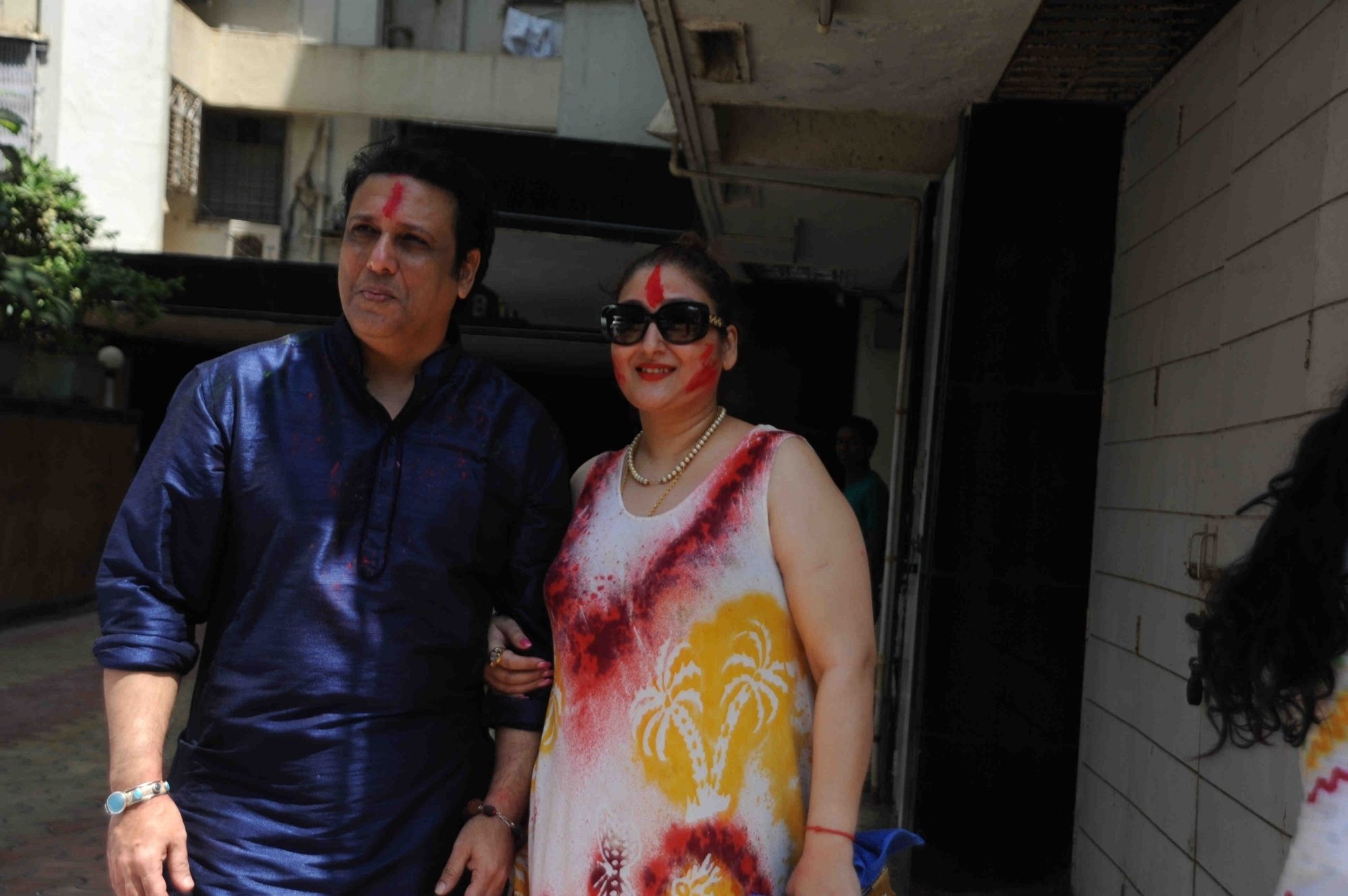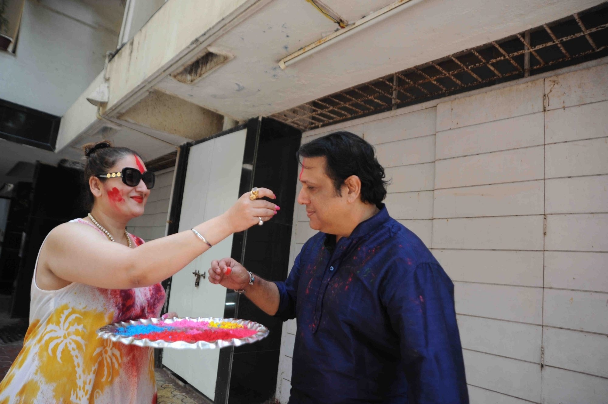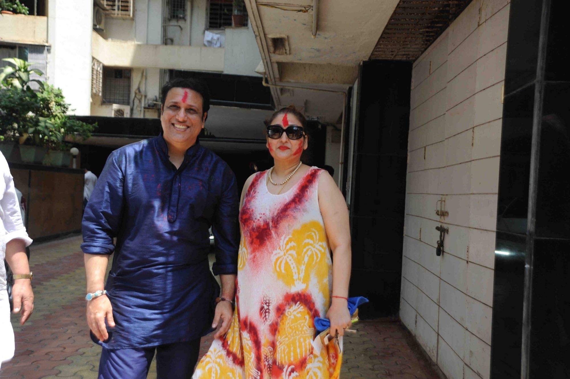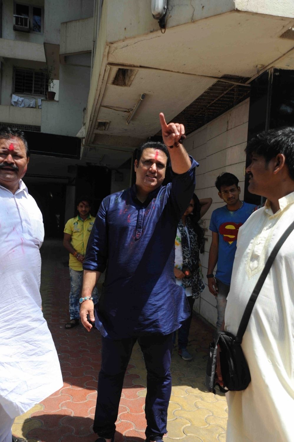 Mumbai: Actor Govinda celebrates Holi with his family at his residence in Mumbai on Thursday, March 24, 2016. (Photo: IANS)