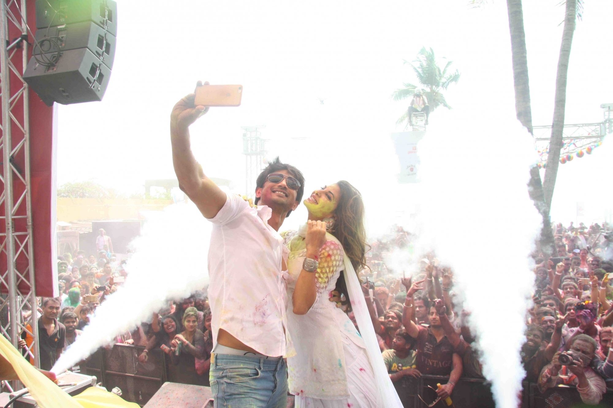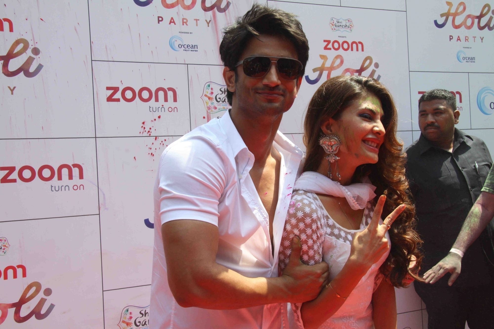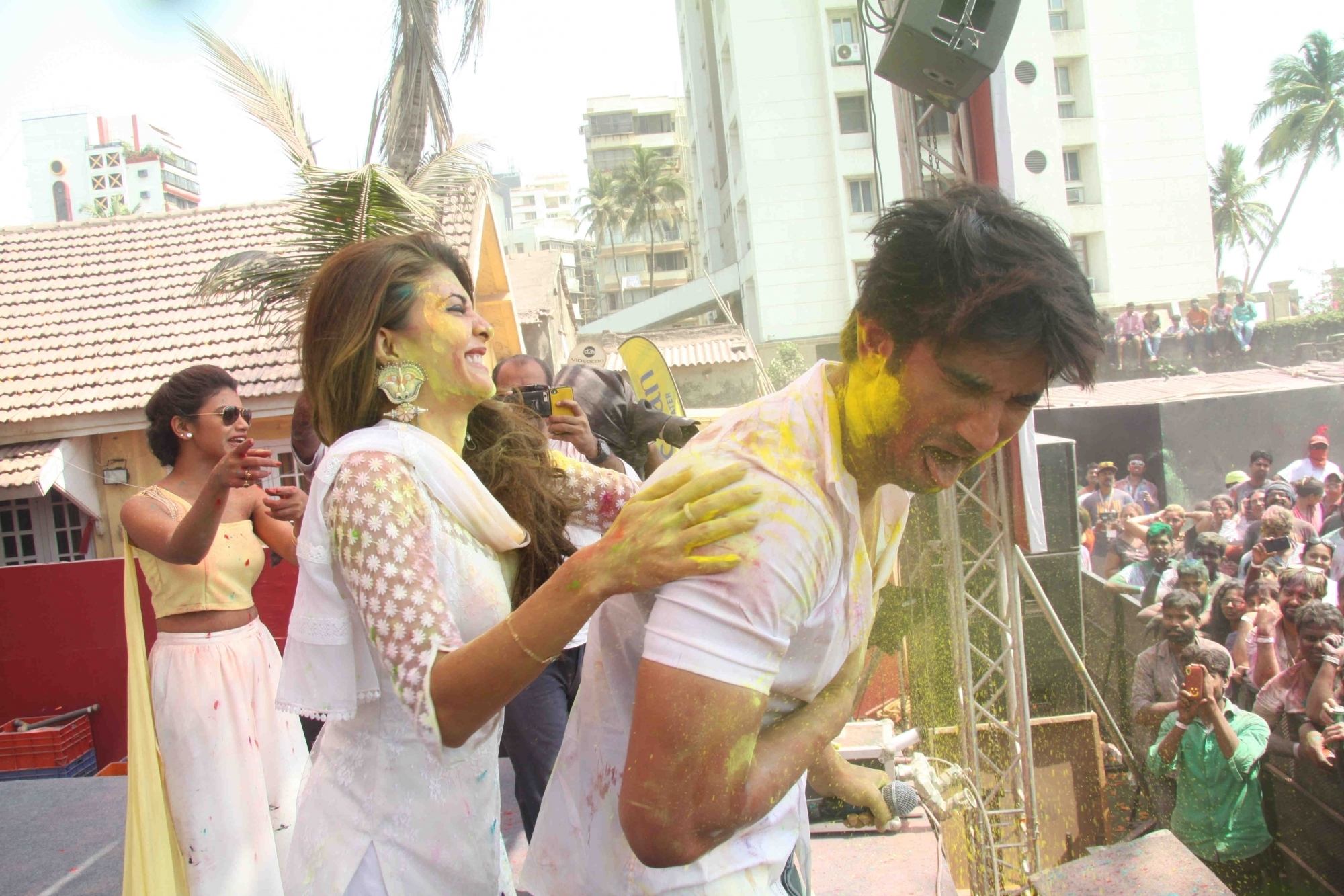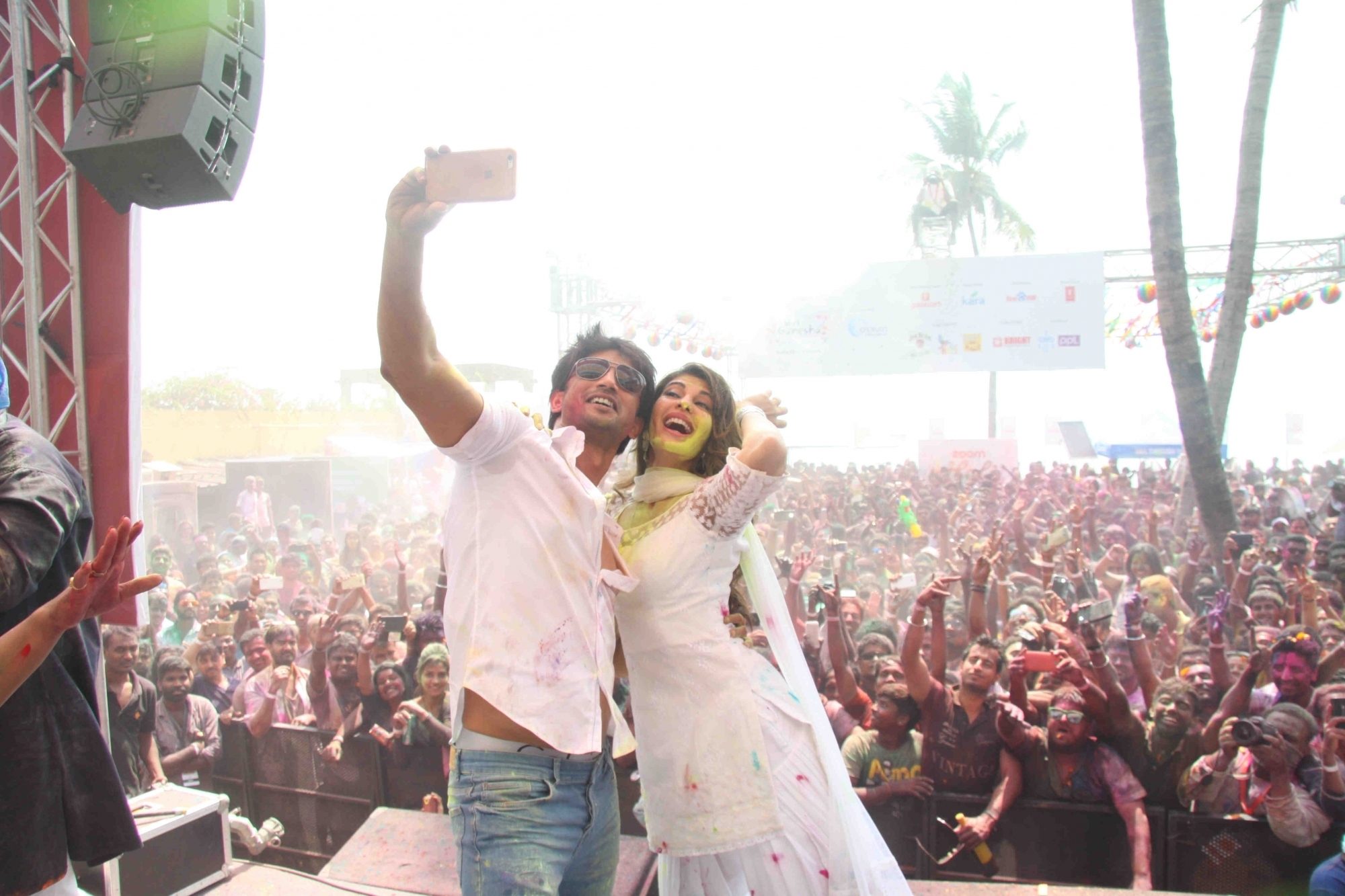 Mumbai: Actors Sushant Singh Rajput and Jacqueline Fernandez during the Zoom Holi celebrations in Mumbai on Thursday, March 24, 2016. (Photo: IANS)