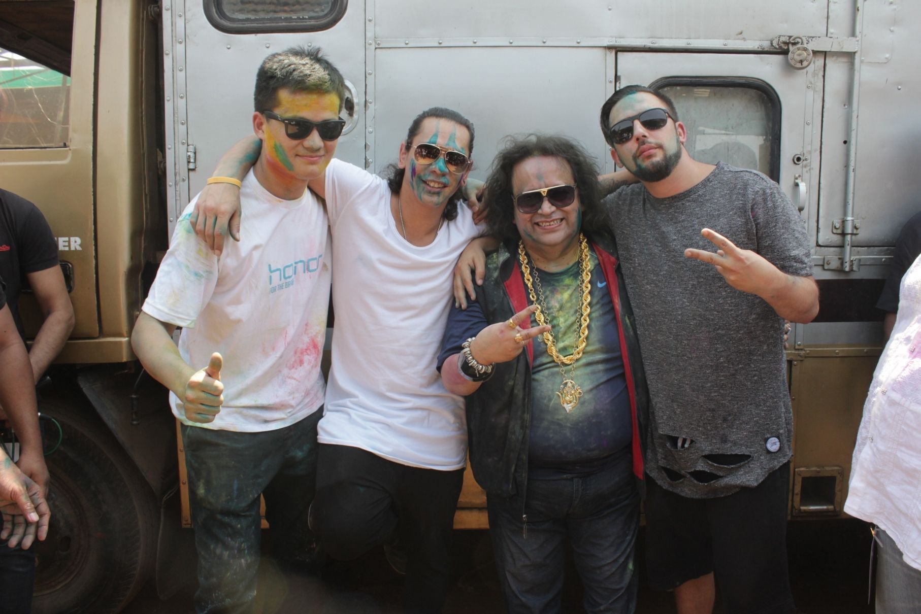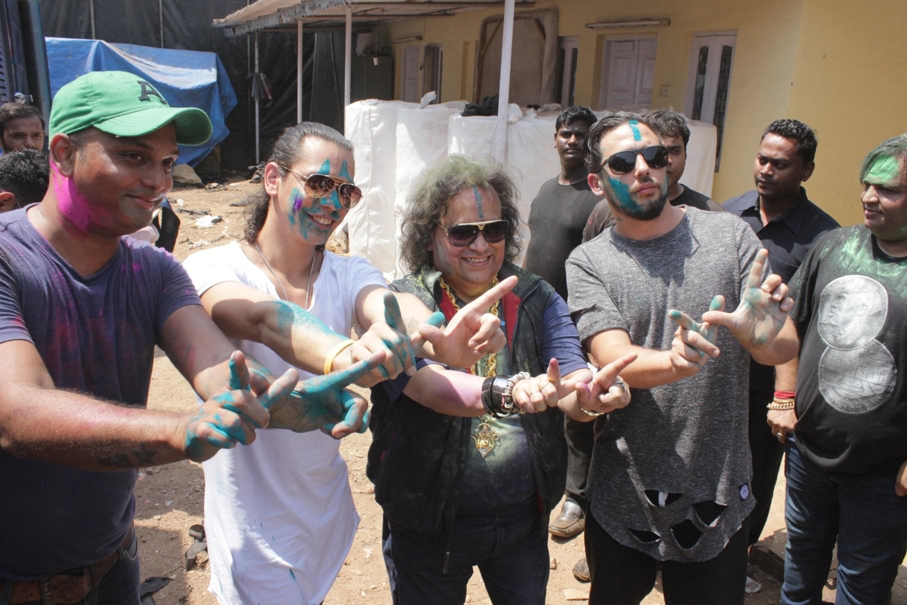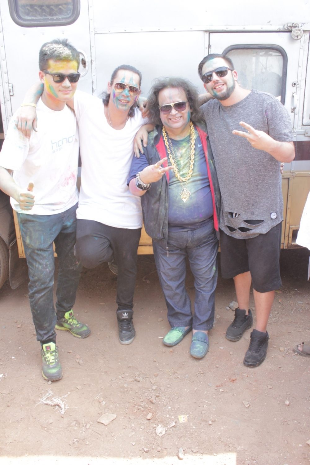 Mumbai: DJ Wolfpack and Bappi Lahiri at Lawman Holi Relaoded 2016 in Mumbai on Thursday, March 24, 2016. (Photo: IANS)
