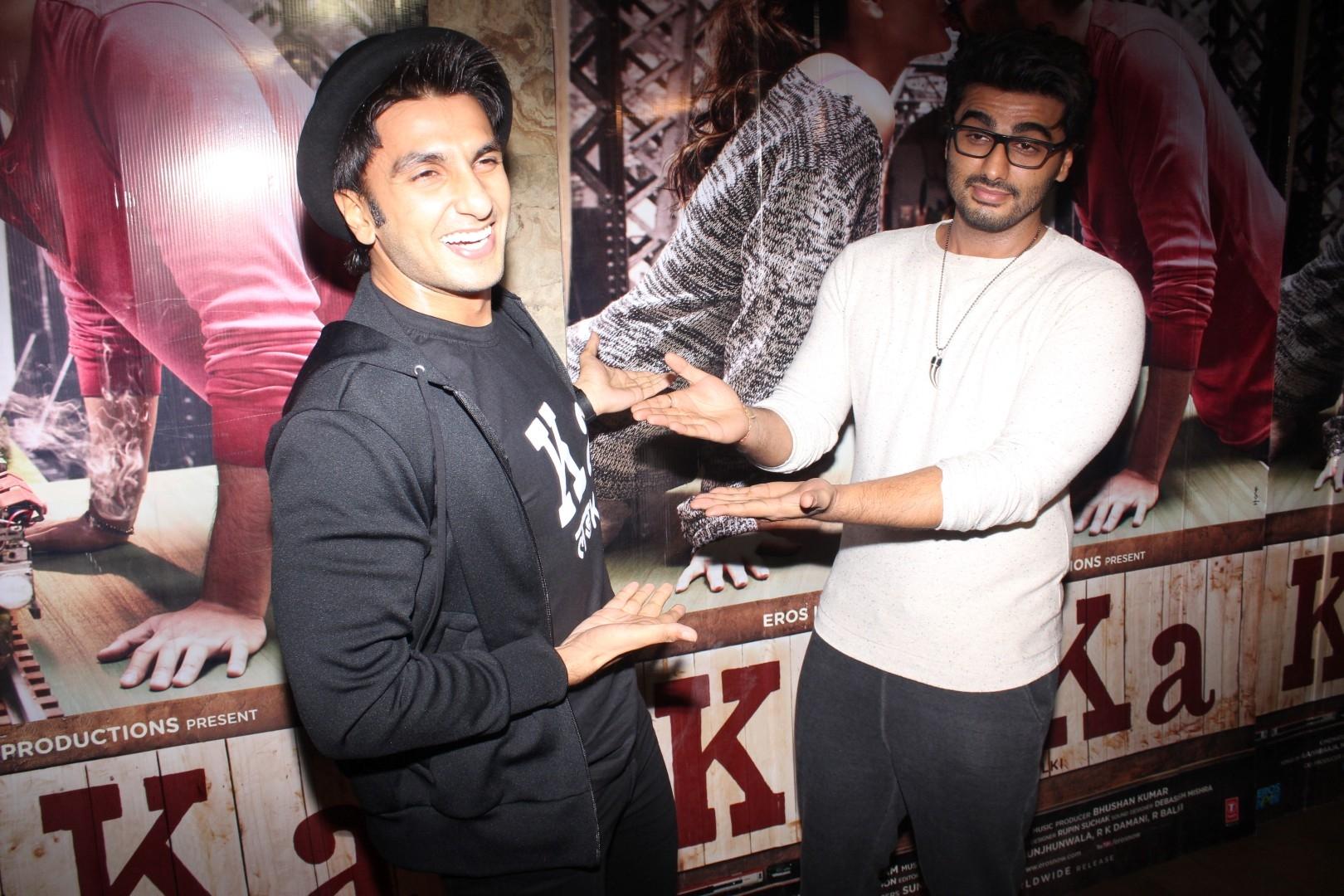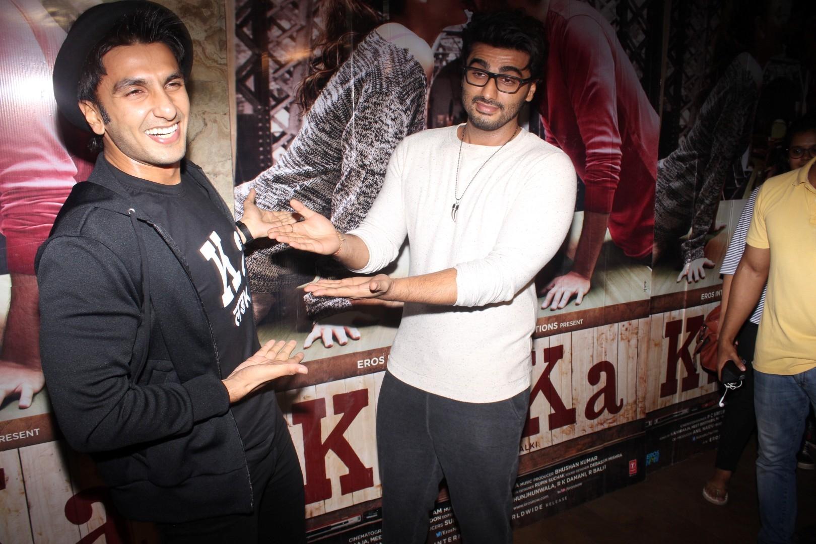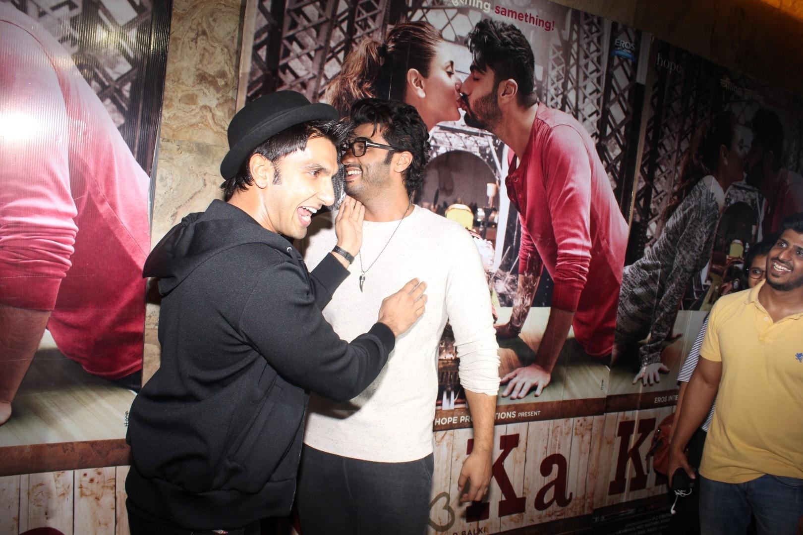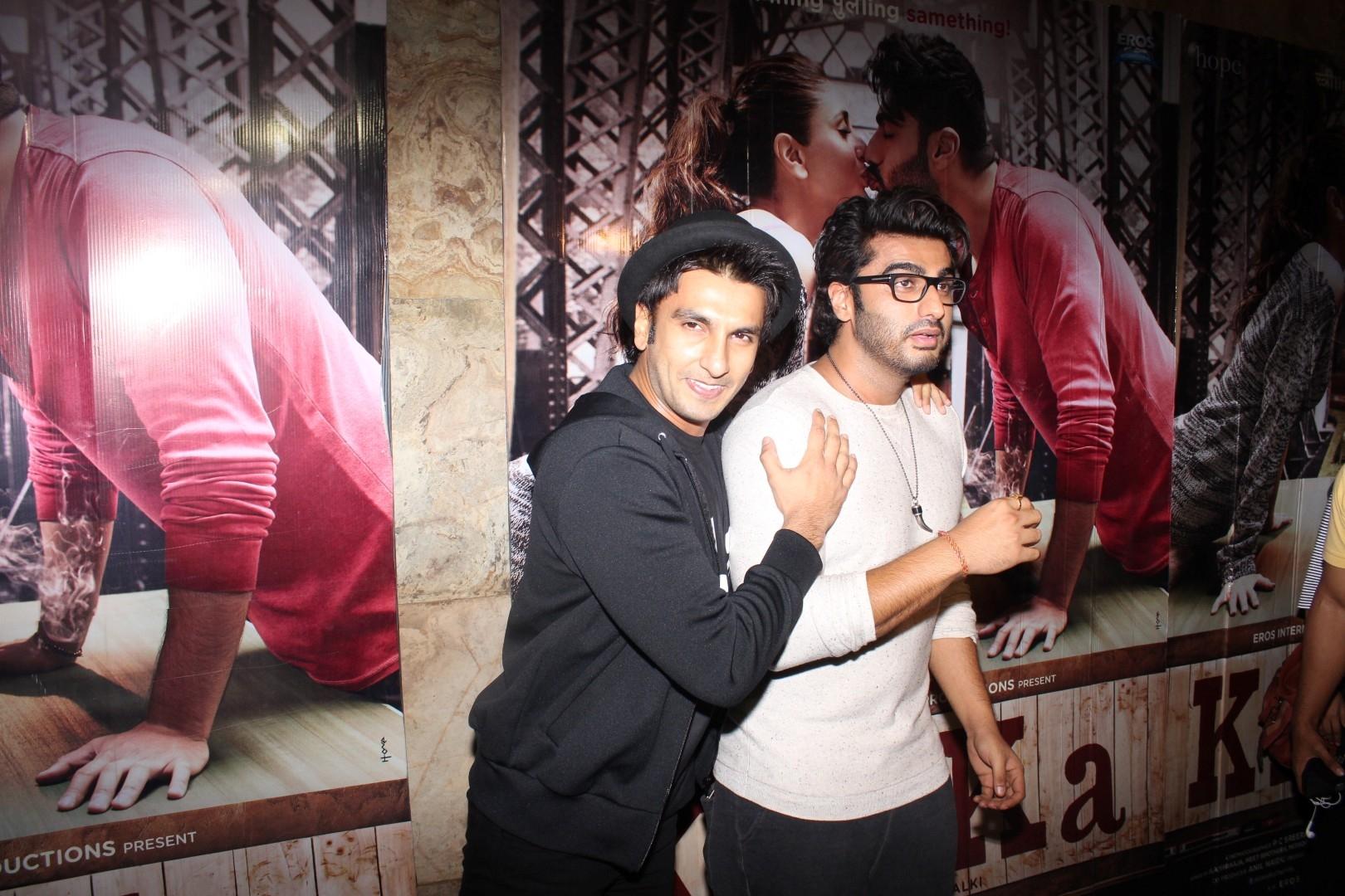 Mumbai: Actors Arjun Kapoor and Ranveer Singh during the screening of film Ki & Ka, in Mumbai on March 30, 2016. (Photo: IANS)