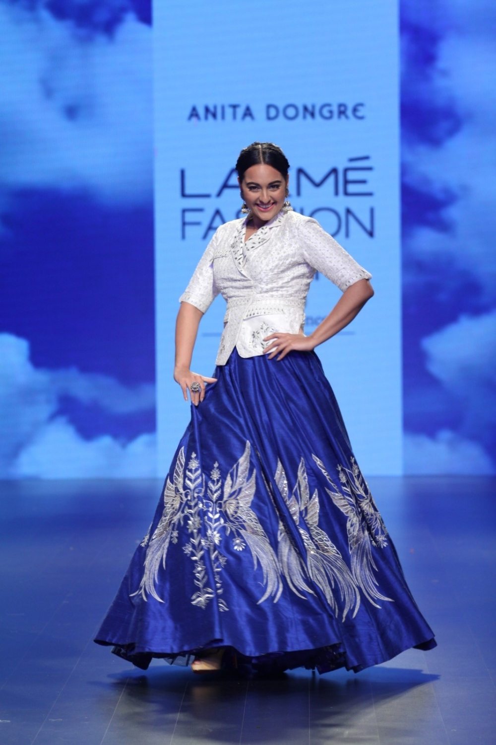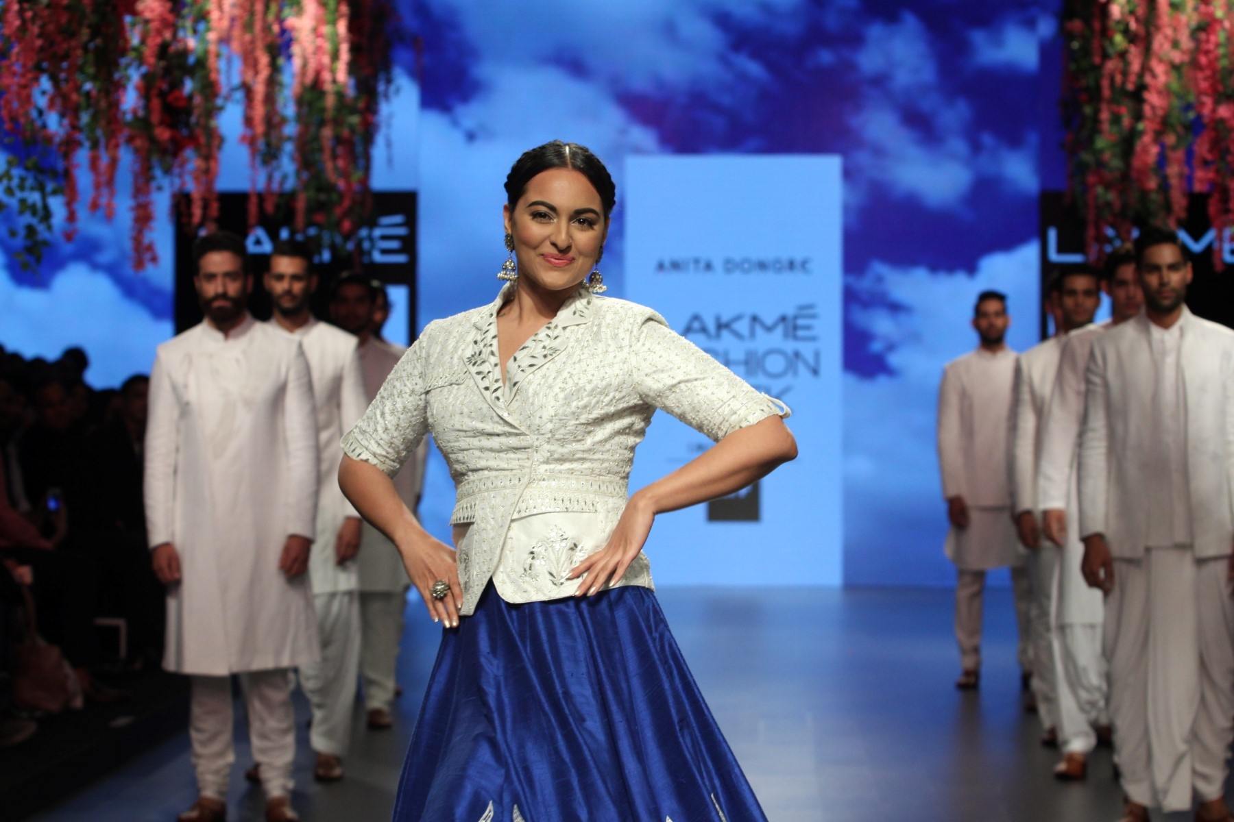 Mumbai: Actress Sonakshi Sinha walks the ramp for designer Anita Dongre show during the Lakme Fashion Week Summer Resort 2016 in Mumbai on April 1, 2016 (Photo: IANS)