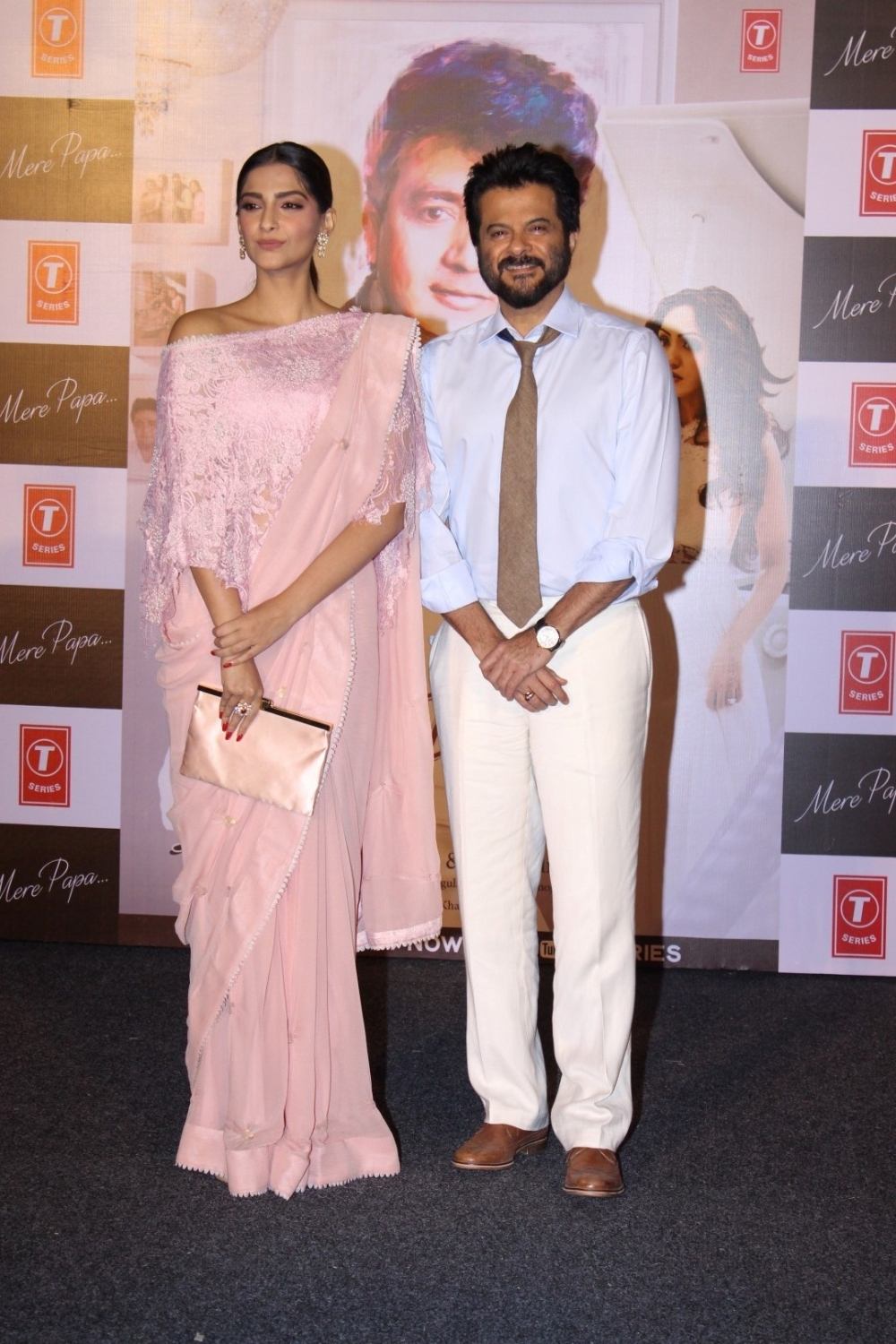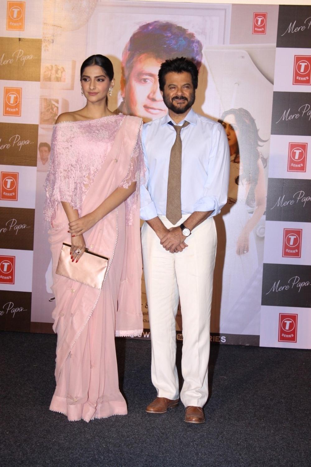 Mumbai: Actors Anil Kapoor and Sonam Kapoor during the launch of music video Mere Papa by Khushali and Tulsi Kumar in Mumbai on April 1, 2016 (Photo: IANS)