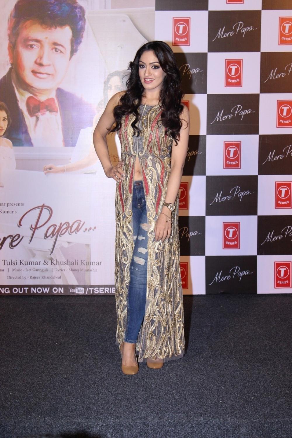 Mumbai: Singer and late producer Gulshan Kumar’s daughter Tulsi Kumar during the launch of music video Mere Papa by Khushali and Tulsi Kumar in Mumbai on April 1, 2016 (Photo: IANS)