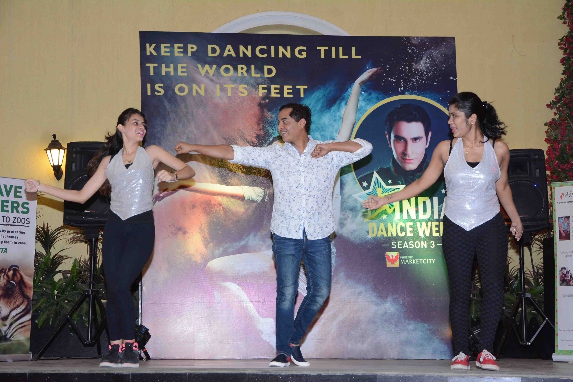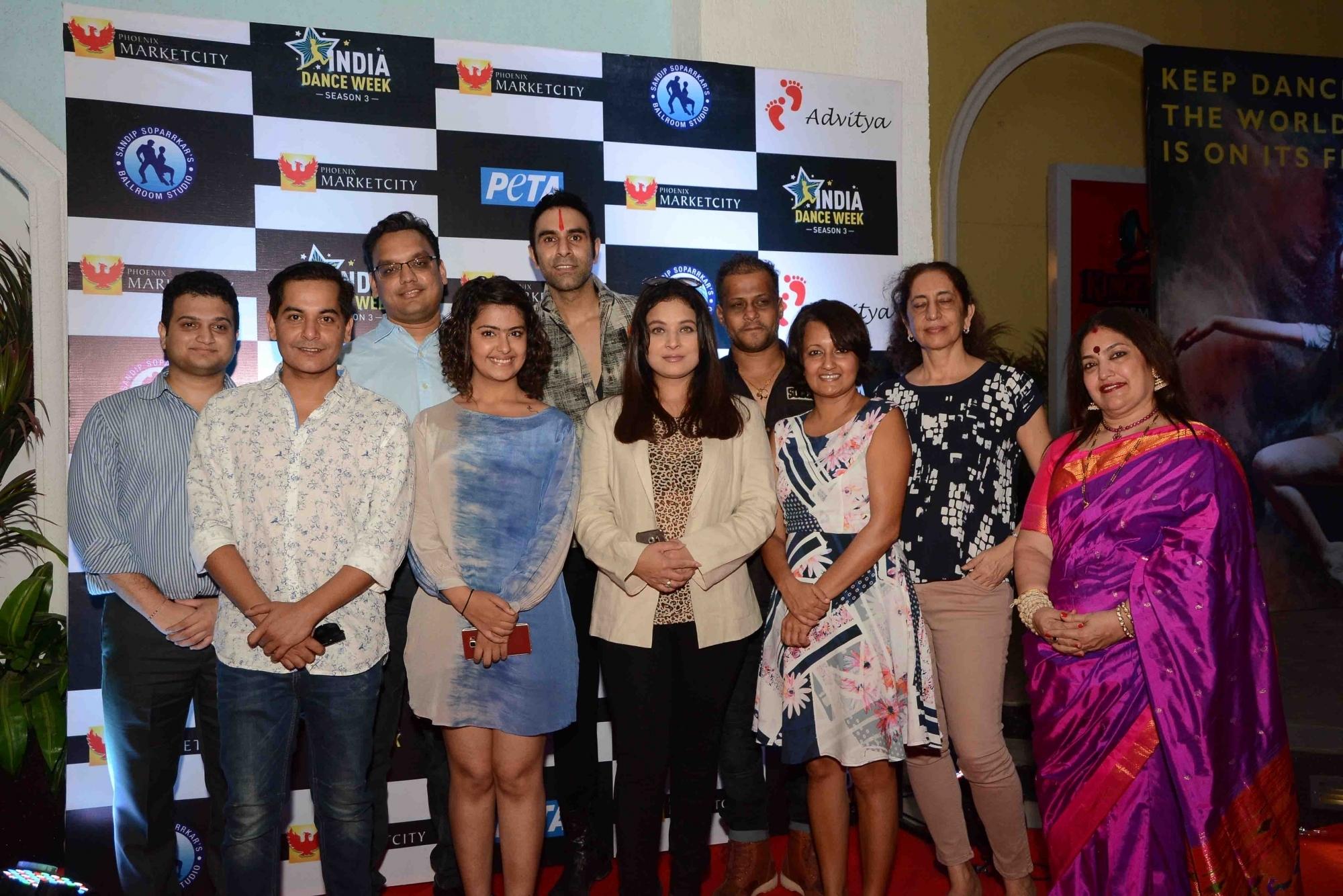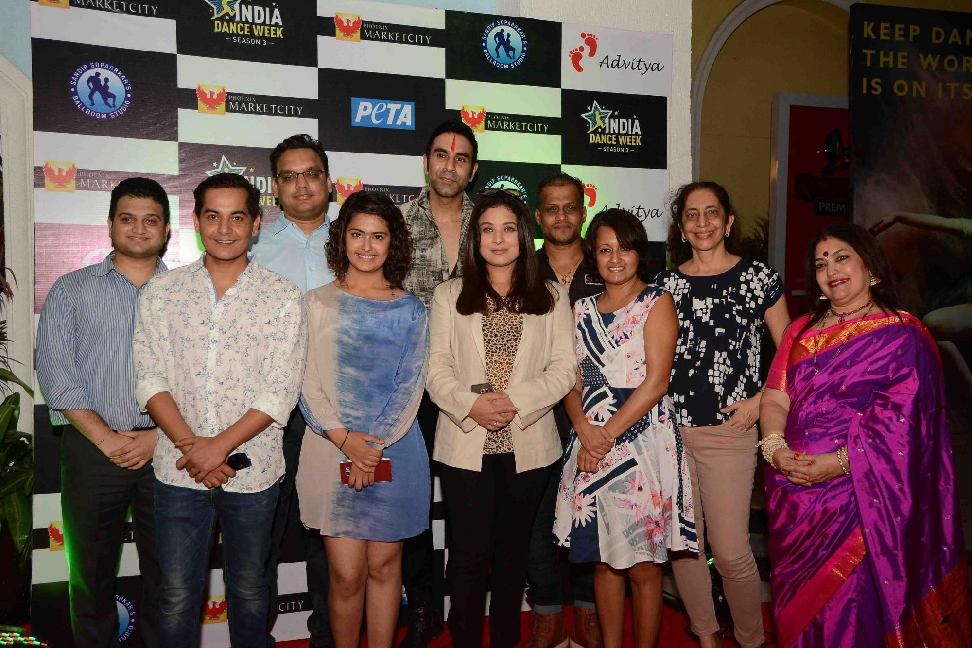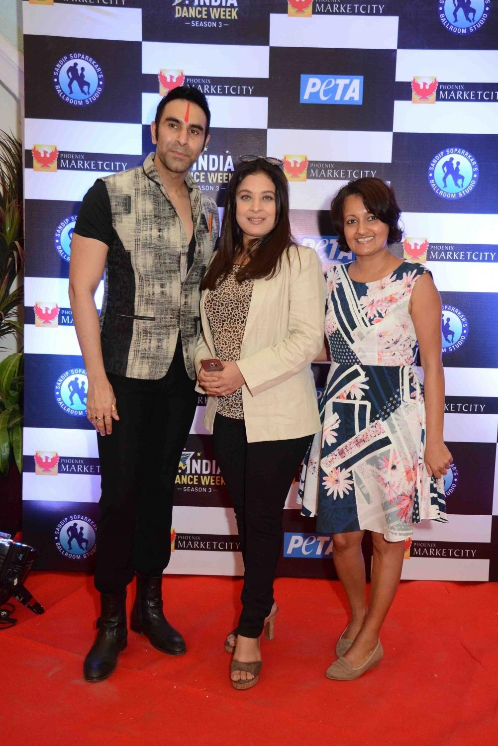 Mumbai: Bryan, Sandip Soparrkar with Uma Rele during the `3rd India Dance Week` hosted by Sandip Soparrkar in Mumbai. (Photo: IANS)