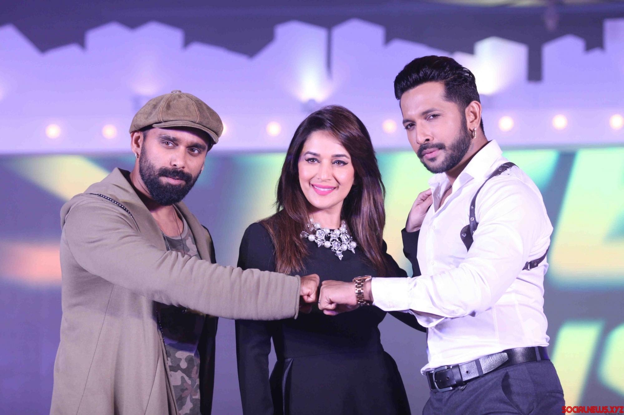 Mumbai: Choreographers Bosco Martins, Terence Lewis and actress Madhuri Dixit during the announcement of &TV dance show So You Think You Can Dance in Mumbai on April 19, 2016. (Photo: IANS)
