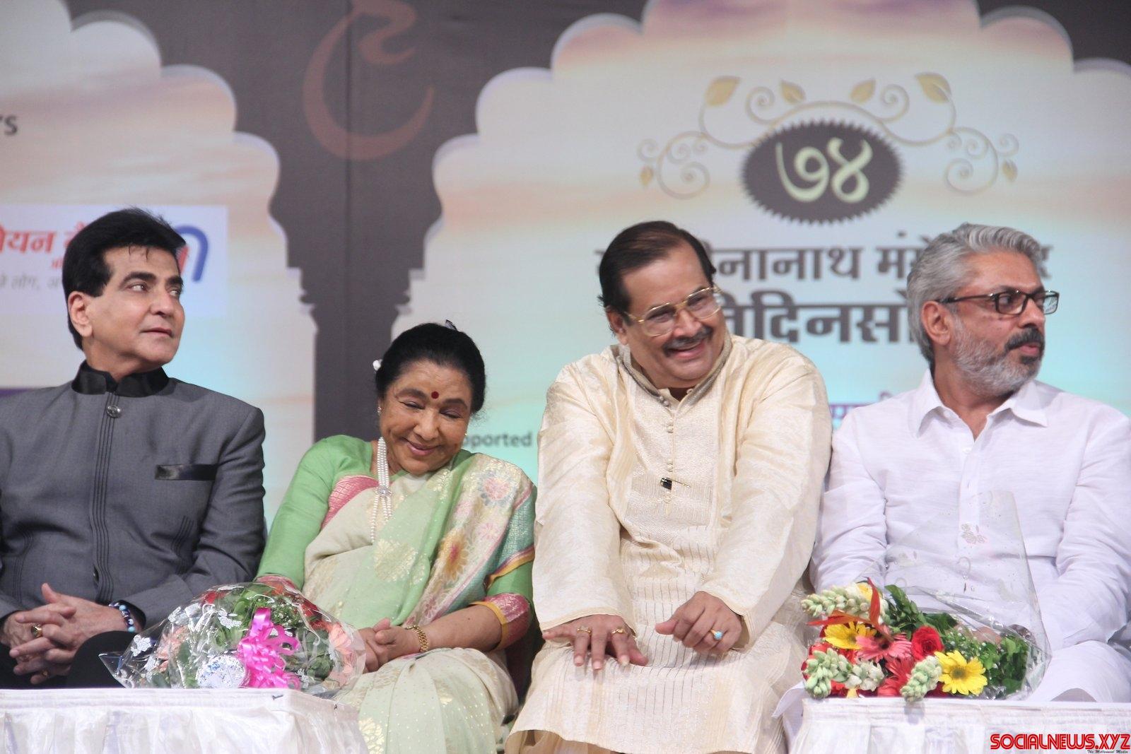 Mumbai: Actor Jeetendra, singer Asha Bhosle, vocalist Ajoy Chakrabarty and filmmaker Sanjay Leela Bhansali during the 74th Master Dinanath Mangeshkar Awards 2016 in Mumbai, on April 24, 2016. (Photo: IANS)