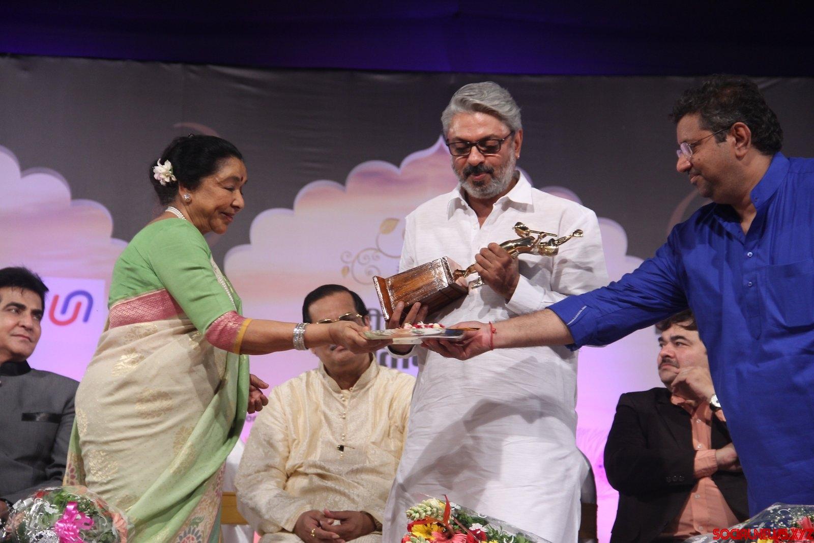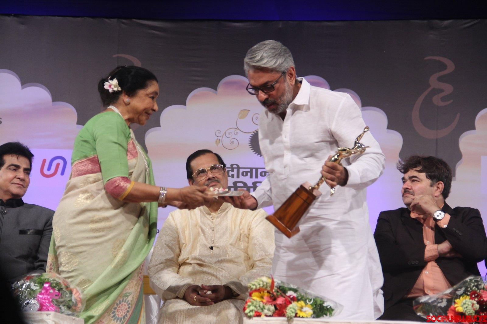 Mumbai: Singer Asha Bhosle presents the award to filmmaker Sanjay Leela Bhansali during the 74th Master Dinanath Mangeshkar Awards 2016 in Mumbai, on April 24, 2016. (Photo: IANS)