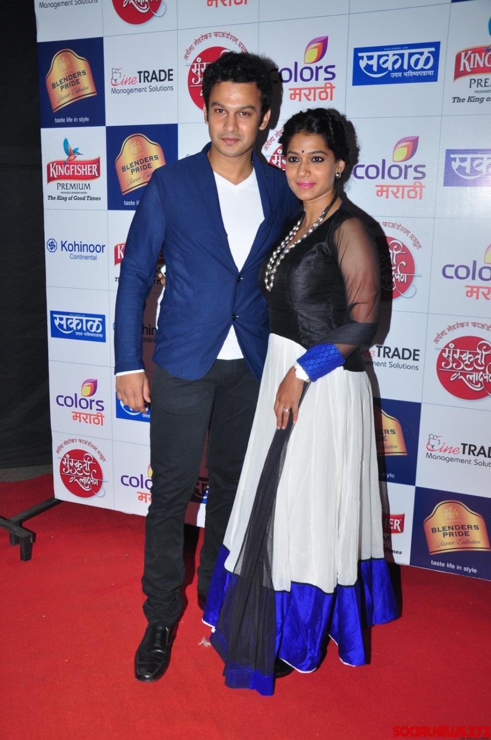 Mumbai: Marathi actor Adinath Kothare with his wife Urmila Kanitkar during the Sanskruti Kala Darpan Awards 2016 in Mumbai, on April 24, 2016. (Photo: IANS)