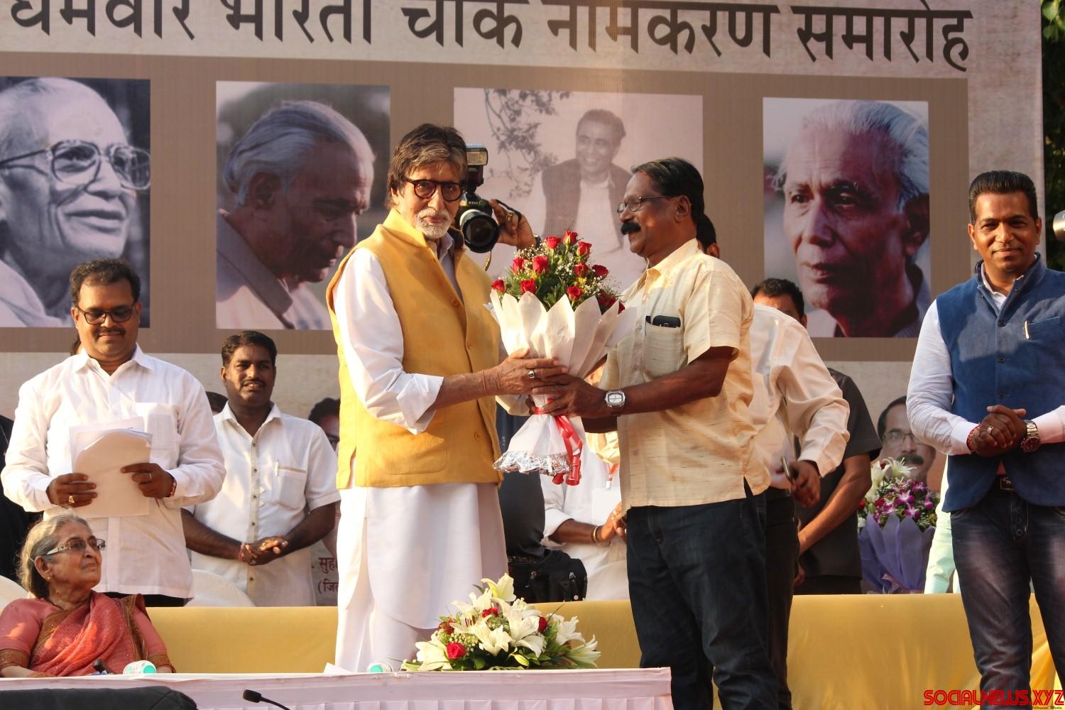 Mumbai: Actor Amitabh Bachchan during the naming of a street junction after renowned Hindu author-journalist Dharamvir Bharati, at Bandra in Mumbai, on April 30, 2016. Late Dharamvir Bharati and Late Harivansh Rai Bachchan, father of Amitabh Bachchan, had a long association with each other right from their teaching day in Allahabad University. (Photo: IANS)