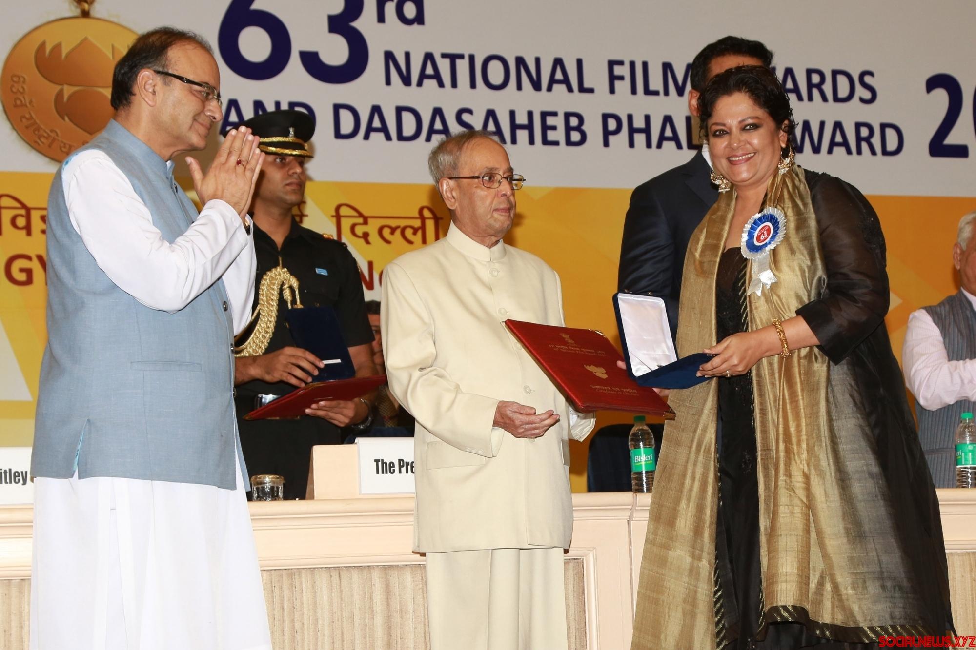 New Delhi: Actress Tanvi Azmi receives the Best Supporting Actress award for her act in “Bajirao Mastani” from President Pranab Mukherjee during the 63rd National Film Awards ceremony at Vigyan Bhawan in New Delhi, on May 3, 2016. (Photo: Amlan Paliwal/IANS)