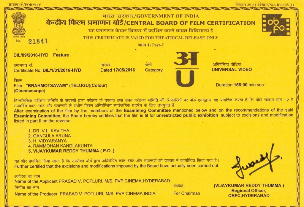Home » Movies » Gallery » Brahmotsavam Censor Certificate Brahmotsavam Censor Certificate Posted By: Raju Sagi May 17, 2016 Facebook Comments About Raju SagiMail Like this:Like Loading...