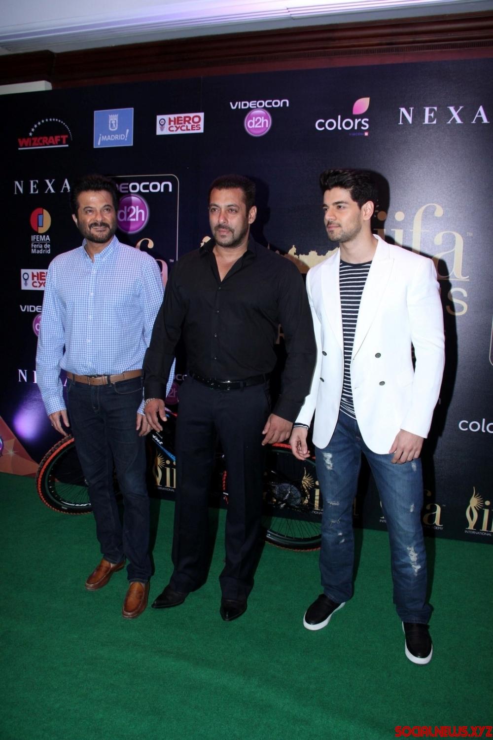 Mumbai: Actors Anil Kapoor, Salman Khan and Sooraj Pancholi during the press conference of 16th International Indian Film Academy (IIFA) Awards in Mumbai on May 20, 2016. (Photo: IANS)