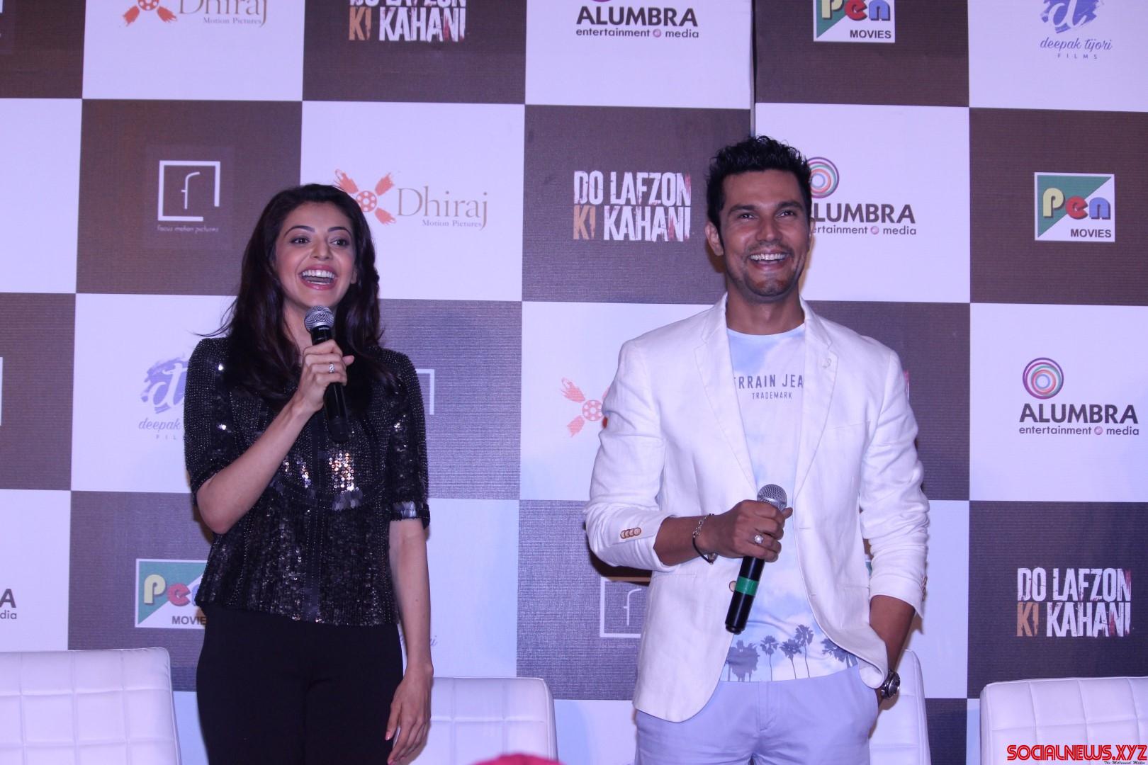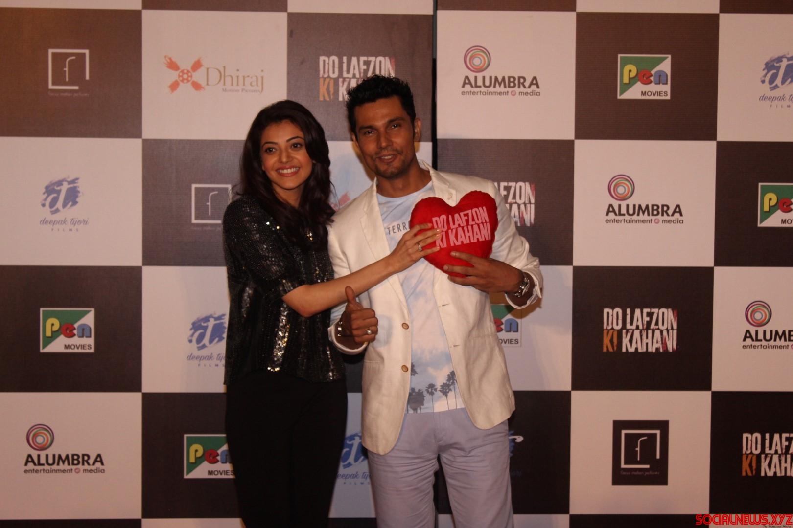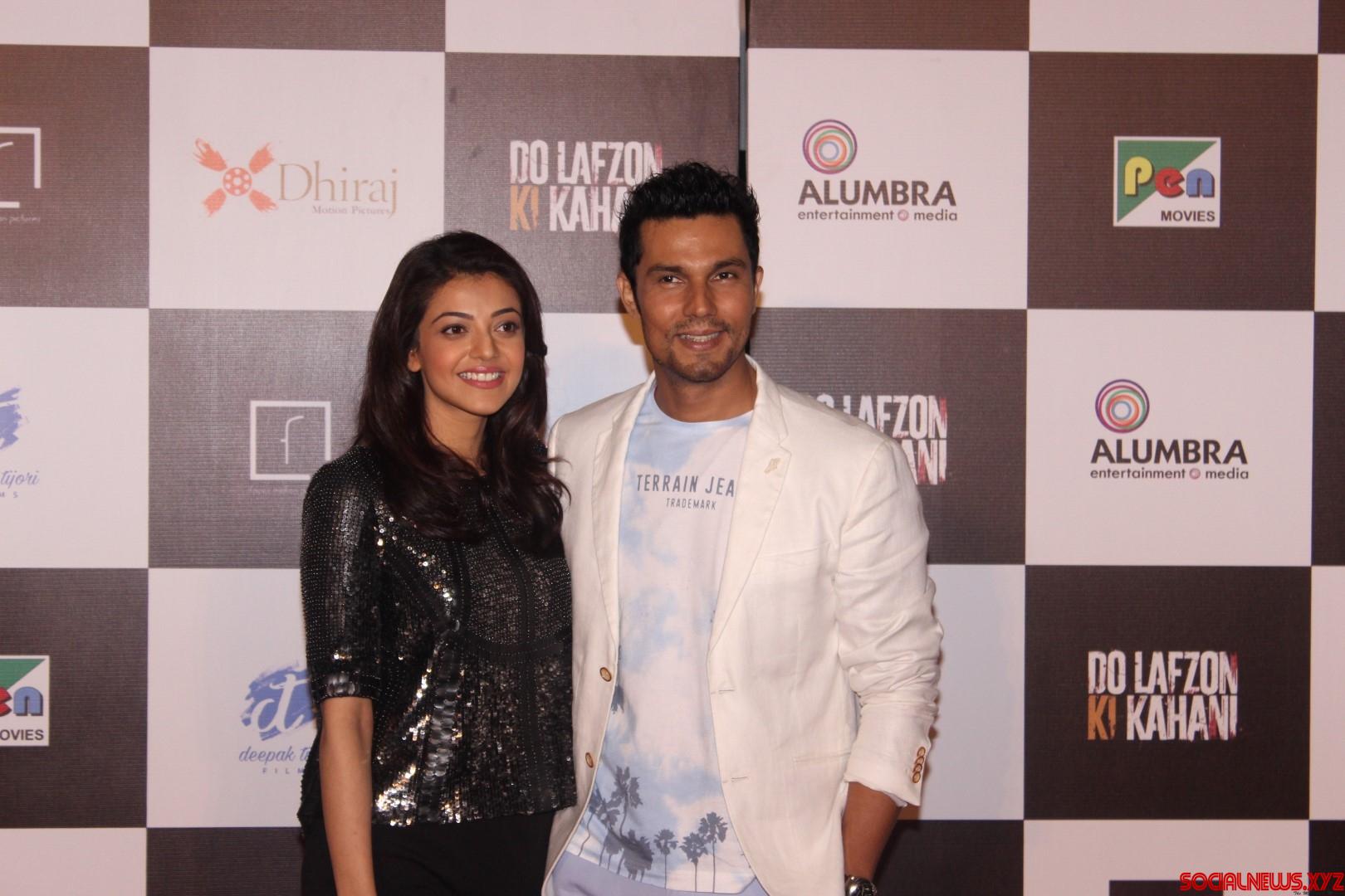 Mumbai: Actors Randeep Hooda and Kajal Aggarwal during the trailer launch of film Do Lafzon ki Kahani, in Mumbai, on June 2, 2016. (Photo: IANS)