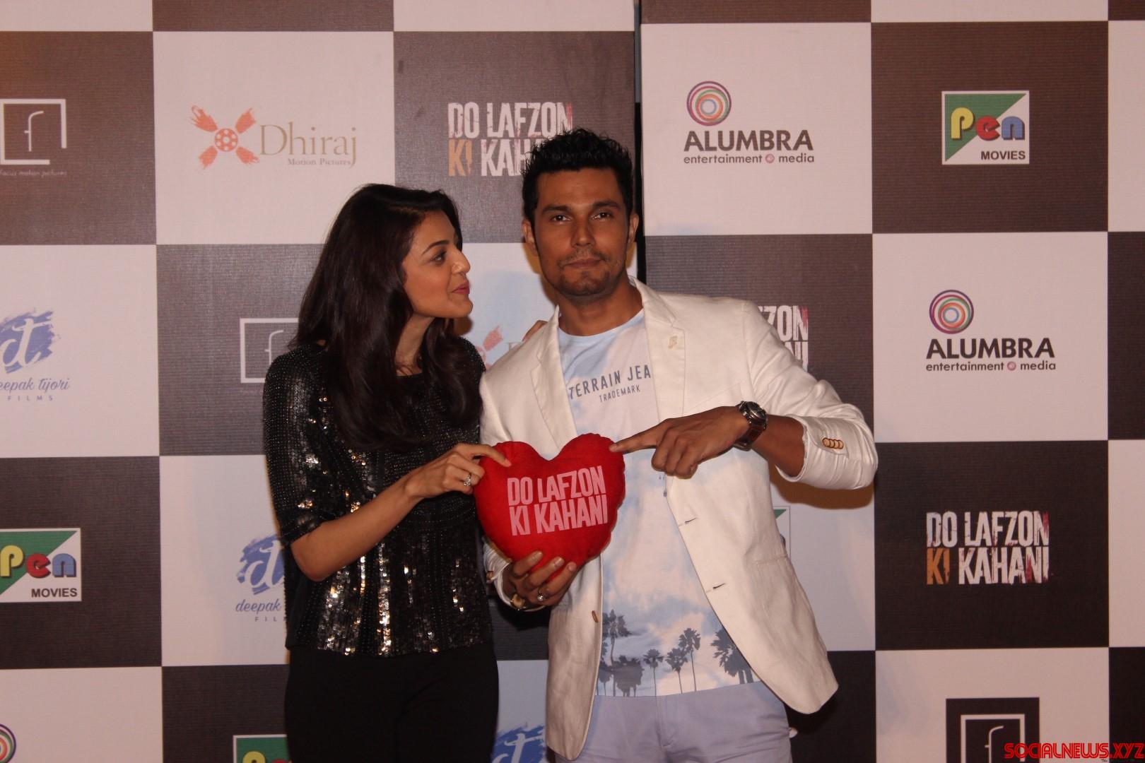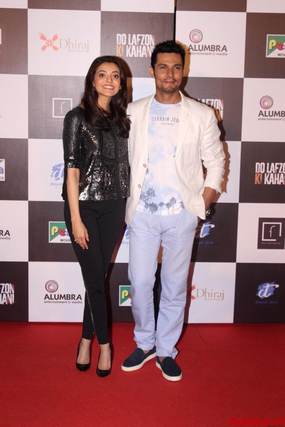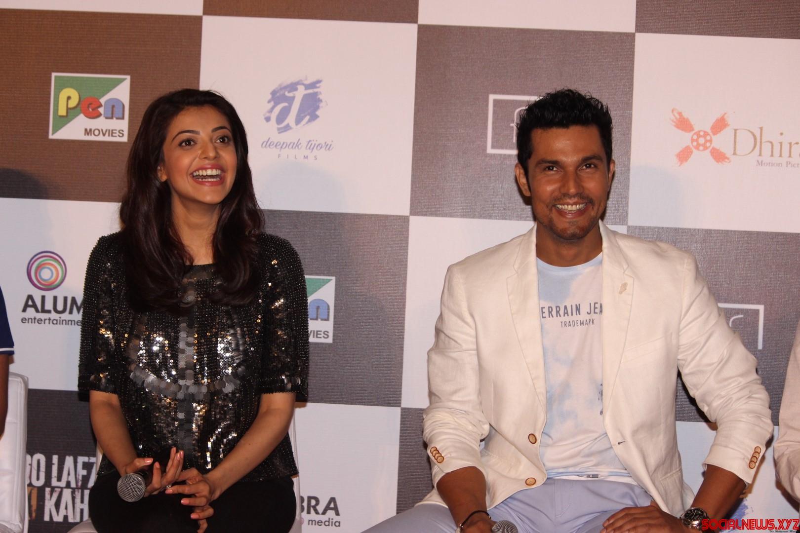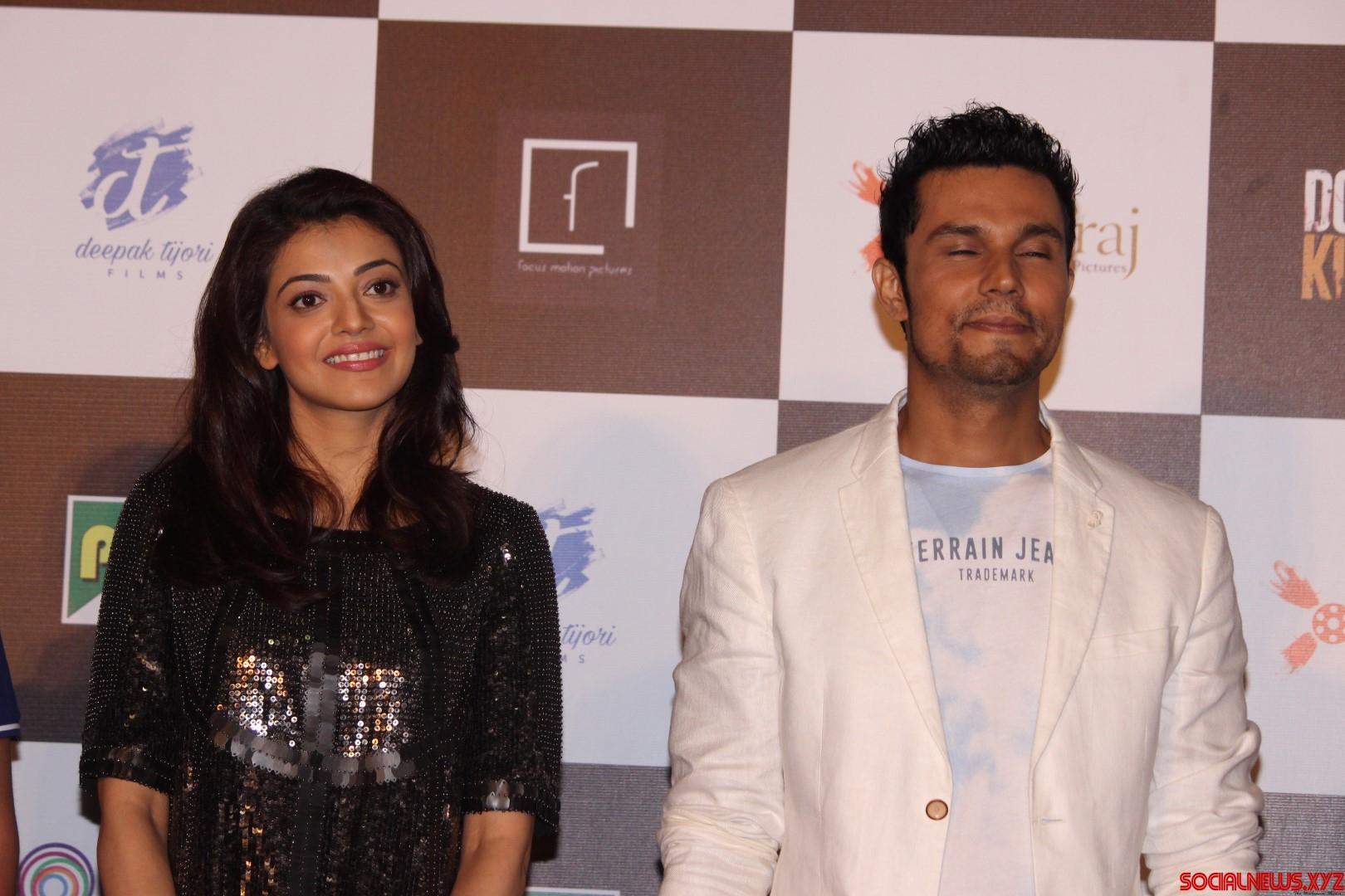 Mumbai: Actors Randeep Hooda and Kajal Aggarwal during the trailer launch of film Do Lafzon ki Kahani, in Mumbai, on June 2, 2016. (Photo: IANS)