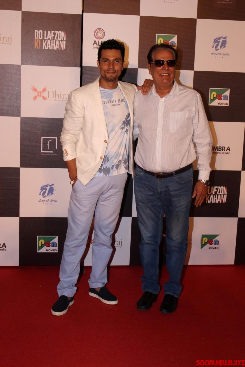 Mumbai: Actor Randeep Hooda along with his father Dr Ranbir Hooda during the trailer launch of film Do Lafzon ki Kahani, in Mumbai, on June 2, 2016. (Photo: IANS)