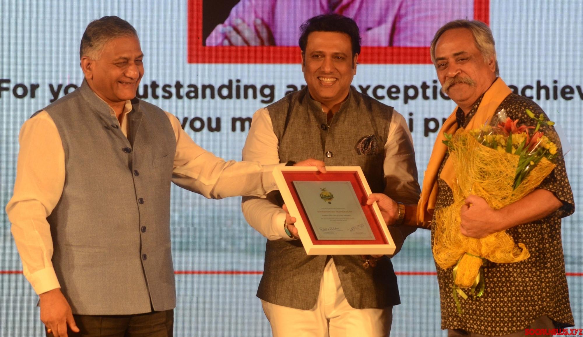 Mumbai: Union Minister VK Singh and actor Govinda during the “Swabhimani Mumbaikar” awards in Mumbai on June 4, 2016. (Photo: IANS)