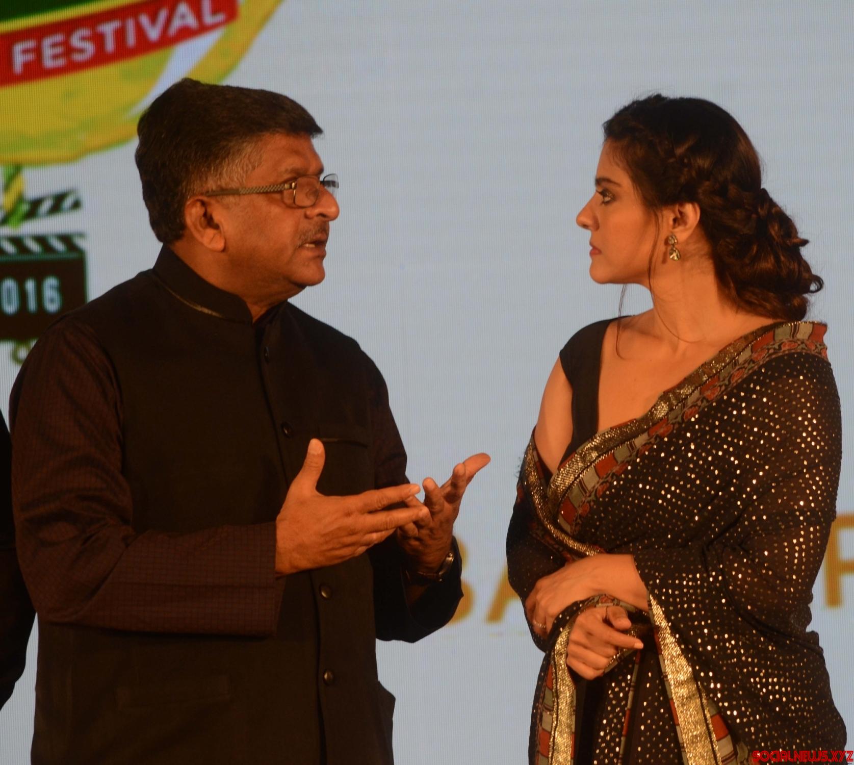 Mumbai: Union Minister Ravi Shankar Prasad and actress Kajol Devgan during the “Swabhimani Mumbaikar” awards in Mumbai on June 4, 2016. (Photo: IANS)