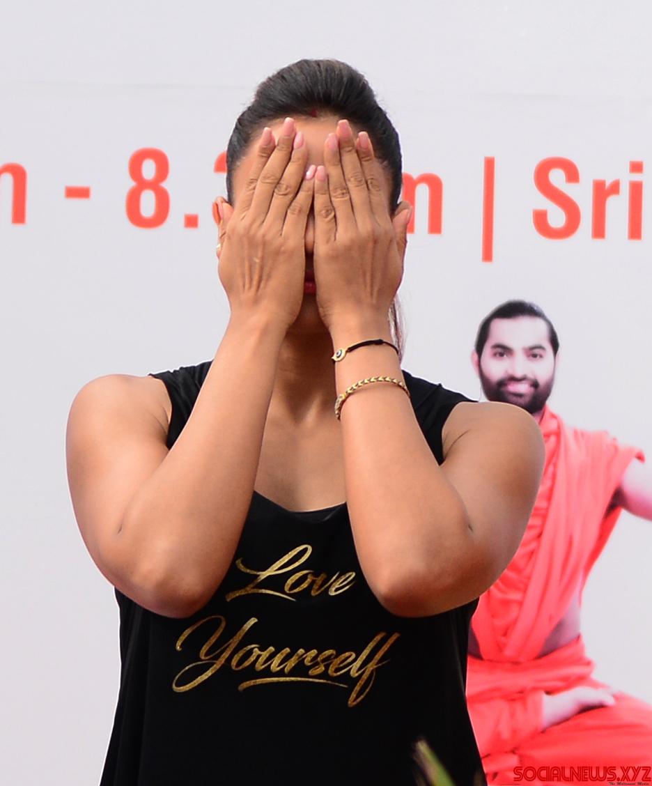 Bengaluru: Actress Bipasha Basu during a programme organised on International Day of Yoga at Kanteerava Stadium in Bengaluru on June 21, 2016. (Photo: IANS)