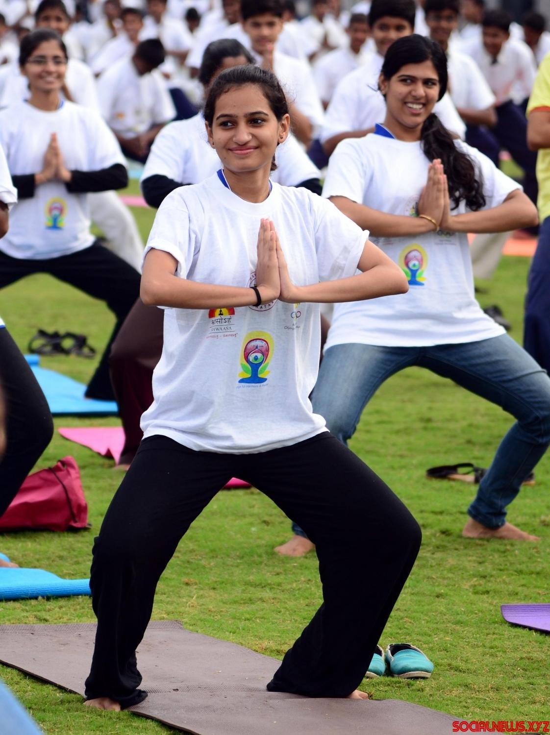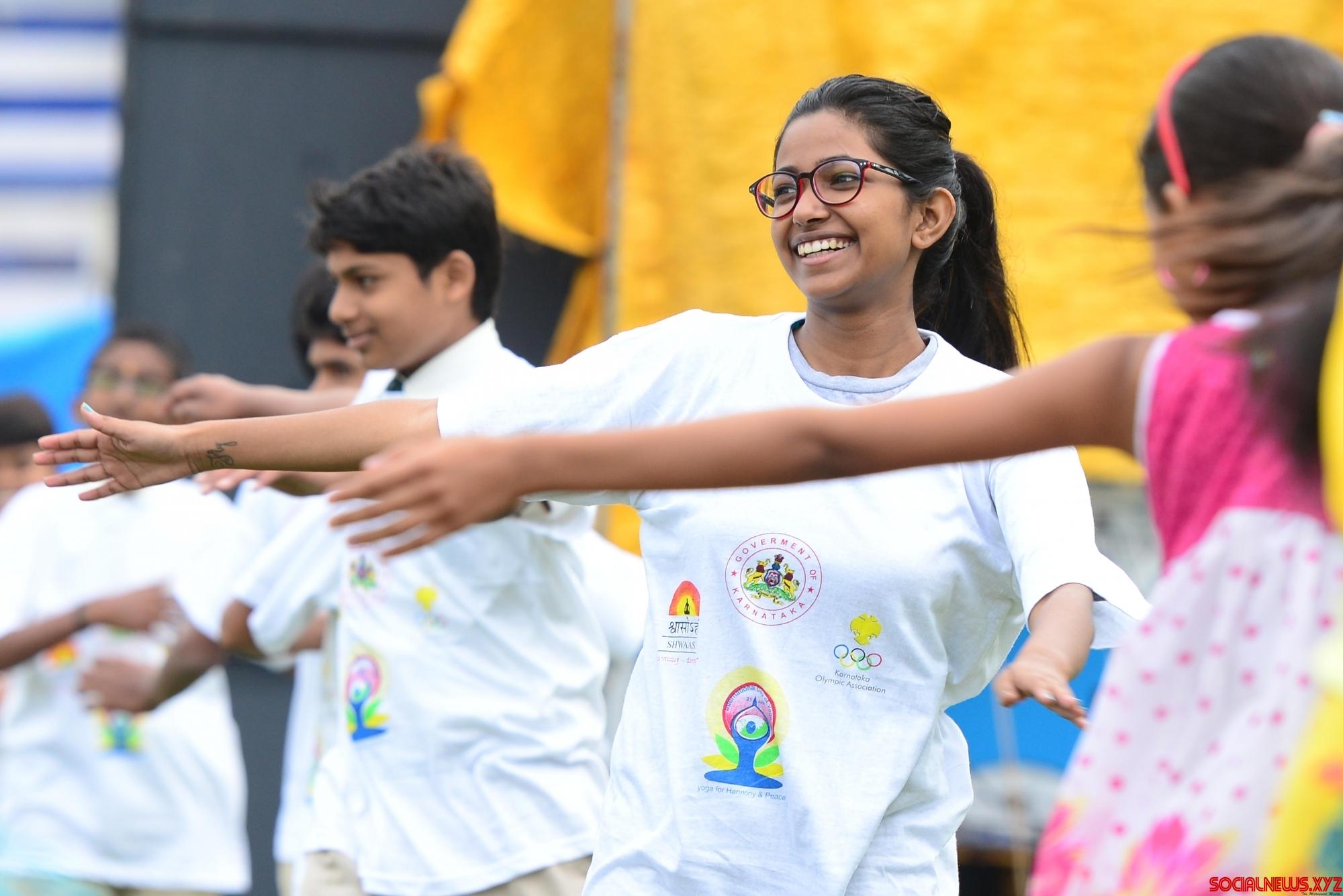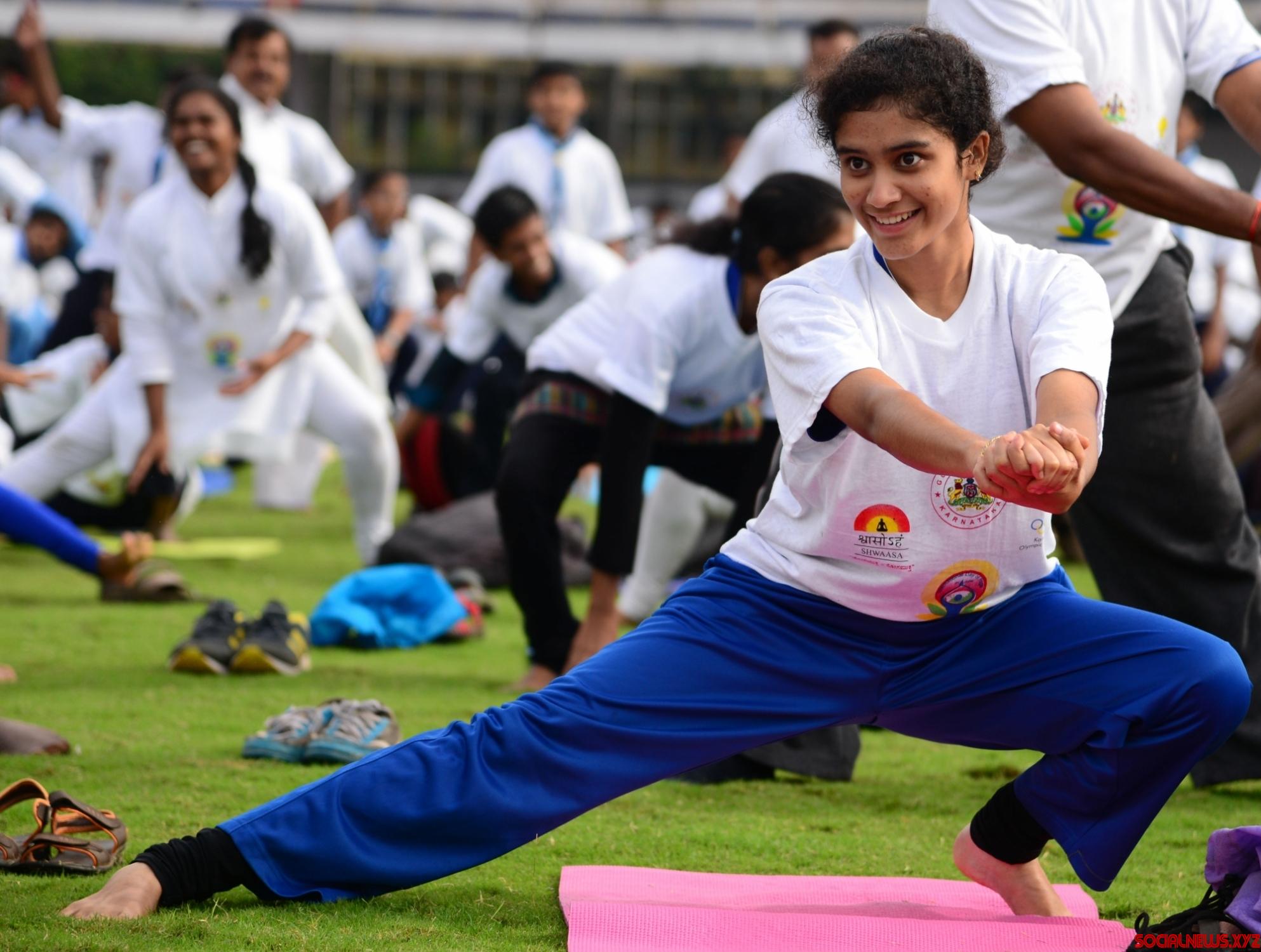 Bengaluru: A girl practice yoga asans -postures- on International Day of Yoga at Kanteerava Stadium in Bengaluru on June 21, 2016. (Photo: IANS)