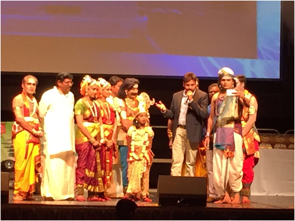 The program continued with live concert, followed by Dasavataram, Mahishasuramardhini sthotram, Yakshagaanam, ancient telugu art form which includes Bhama Kalaapam, Gayatri Vanamaali and Bhakta Prahlada by Kuchipudi Natyaramam artists. This Yakshagaanam is the first of its kind performed out of India and performed by the original kuchipudi family, continuing this as a family legacy.