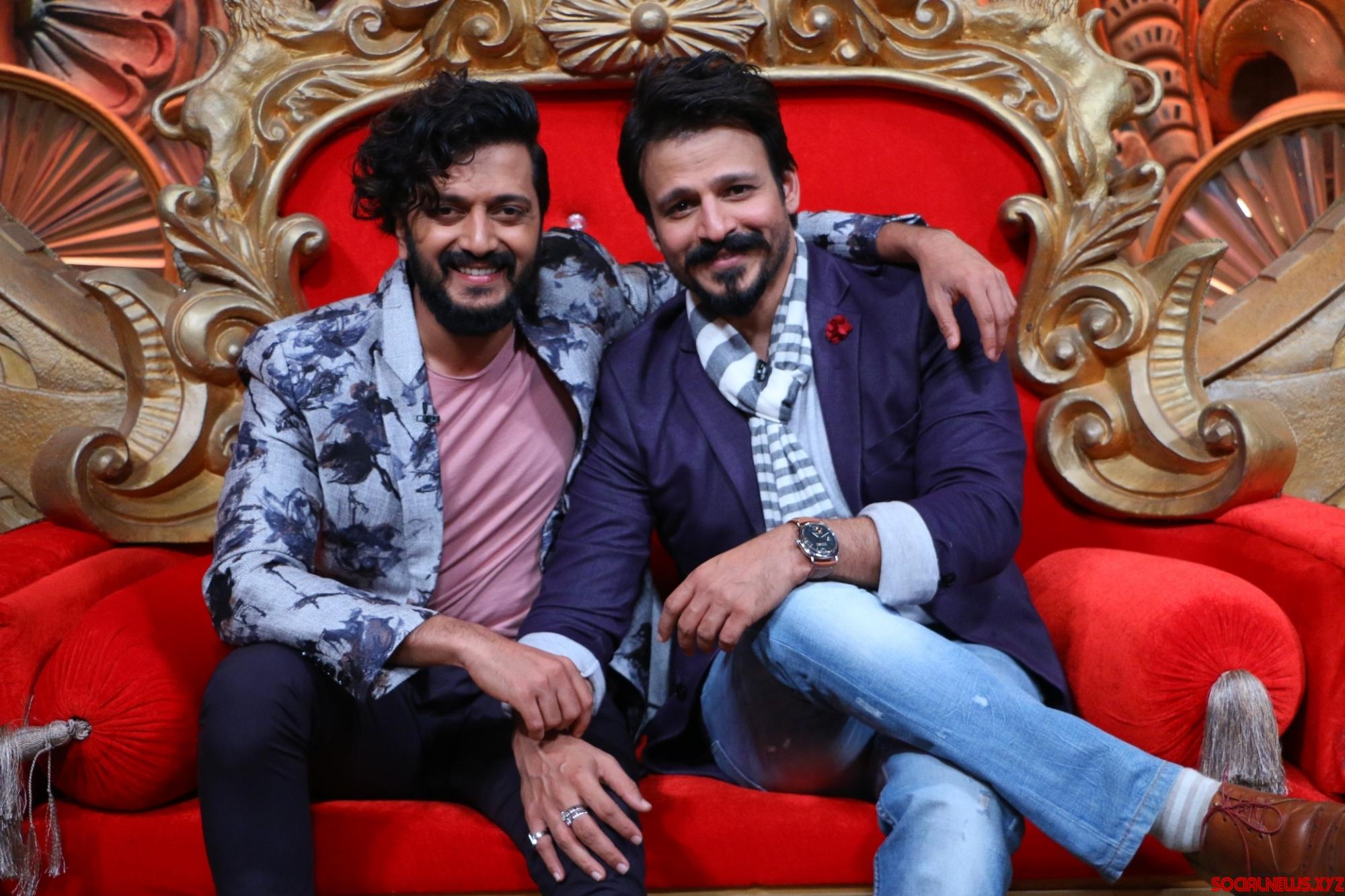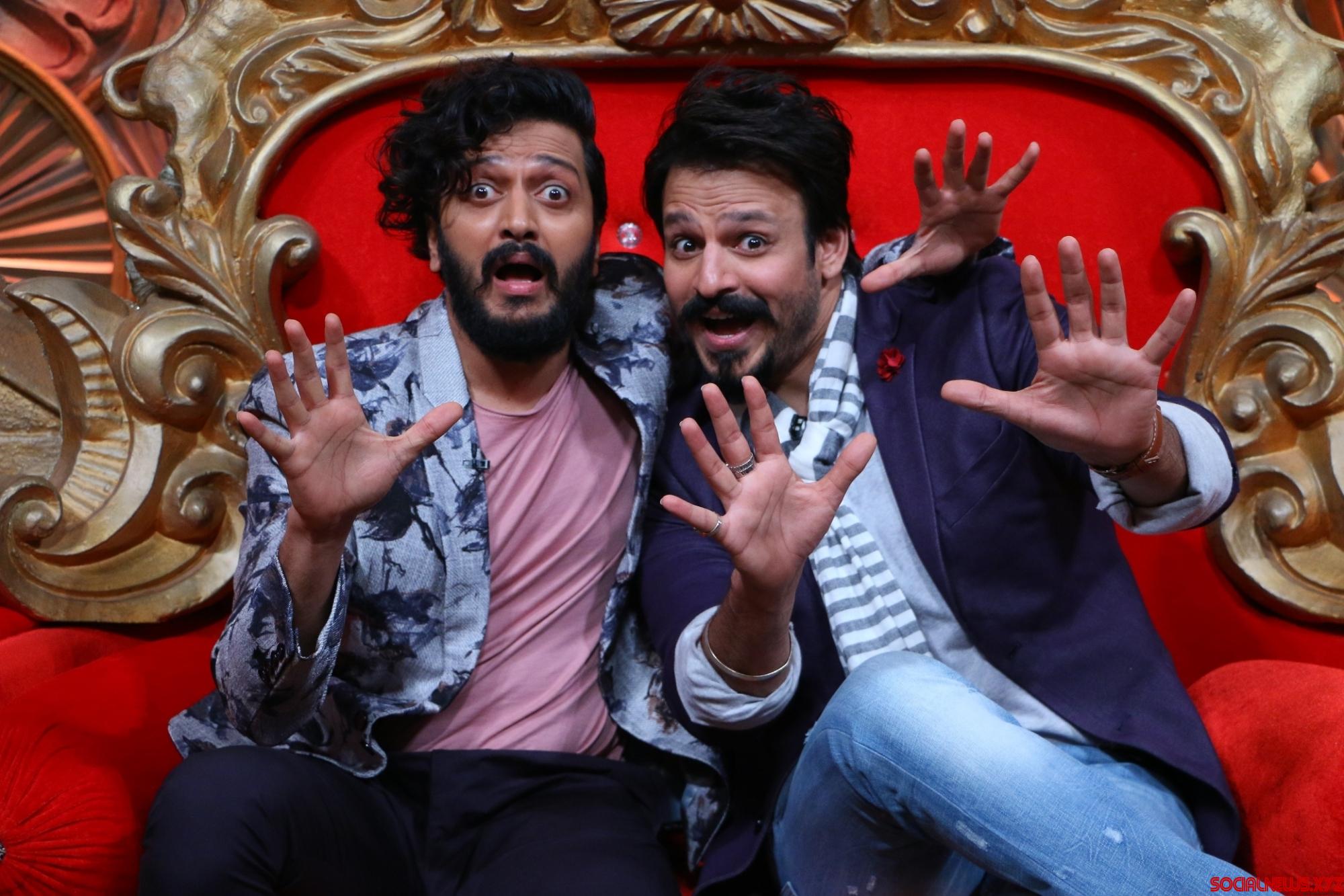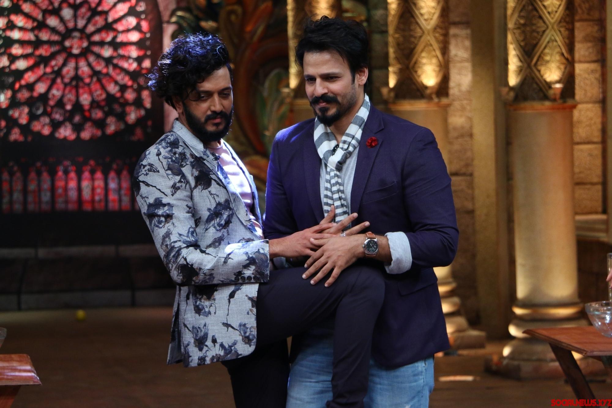 Mumbai: Actors Riteish Deshmukh and Vivek Oberoi during the promotion of film Great Grand Masti on the sets of television show Comedy Nights Bachao, in Mumbai, on July 14, 2016. (Photo: IANS)