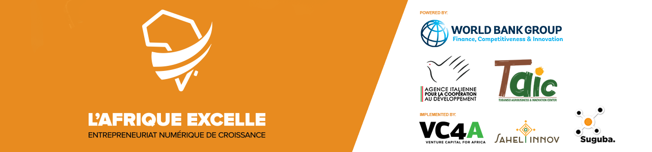 L’Afrique Excelle is powered by the World Bank Group and Tubaniso Agribusiness and Innovation Center with financial assistance from the Italian Agency for Development Cooperation and managed by implementing partners VC4A, Suguba and SahelInnov.