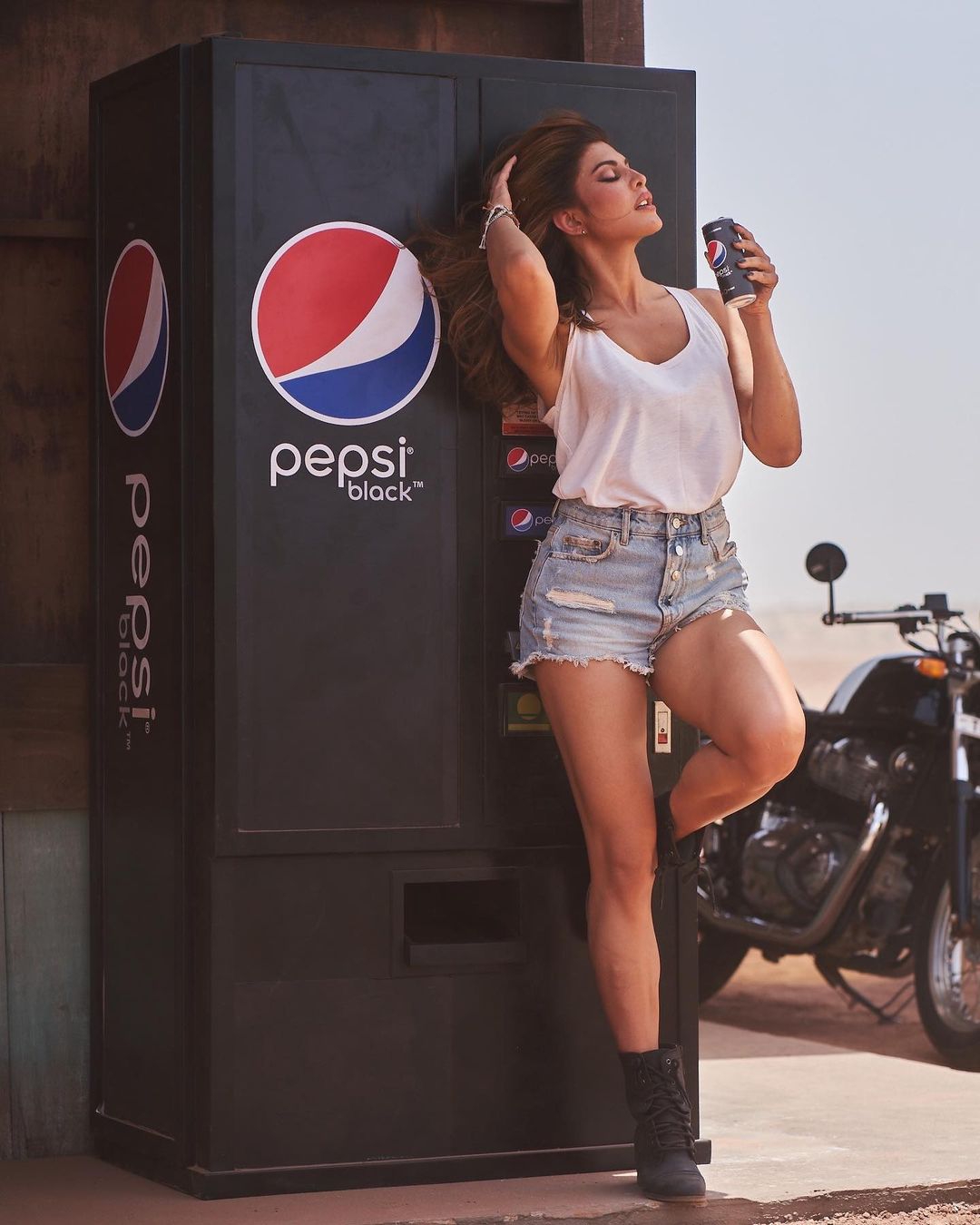 Taking to her social media, the actress shared a picture of herself where she looked as hot as a fire. One can spot Jacqueline in sexy biker denim shorts, a white top and classy boots.