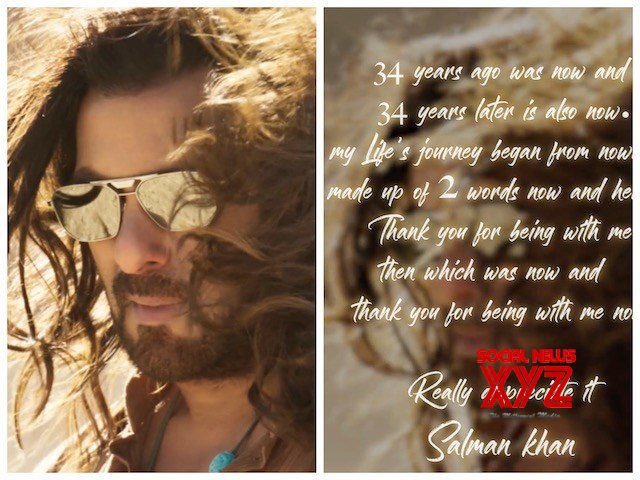 The message reads, “34 years ago was now and 34 years later is also now. My life’s journey began from nowhere made up of 2 words now and here. Thank you for being with me then which was now and thank you for being with me now. Really appreciate it, Salman Khan”