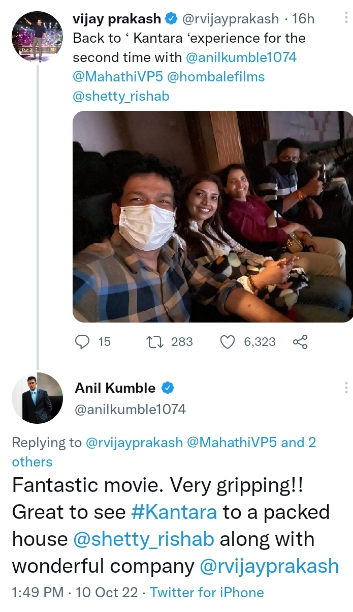 As the original Kannada version of Kantara was released in the theaters on September 30 and since then it has been receiving great reviews from the masses. After the period action blockbuster KGF 2, the audience encountered an intriguing tale Kantara coming from the house of Hombale films. After winning the hearts of the masses, now the film is also receiving love from celebrities across different fields. From Anil Kumble to Prabhas many dignitaries have showered their love on social media by adding their experience of watching the film.