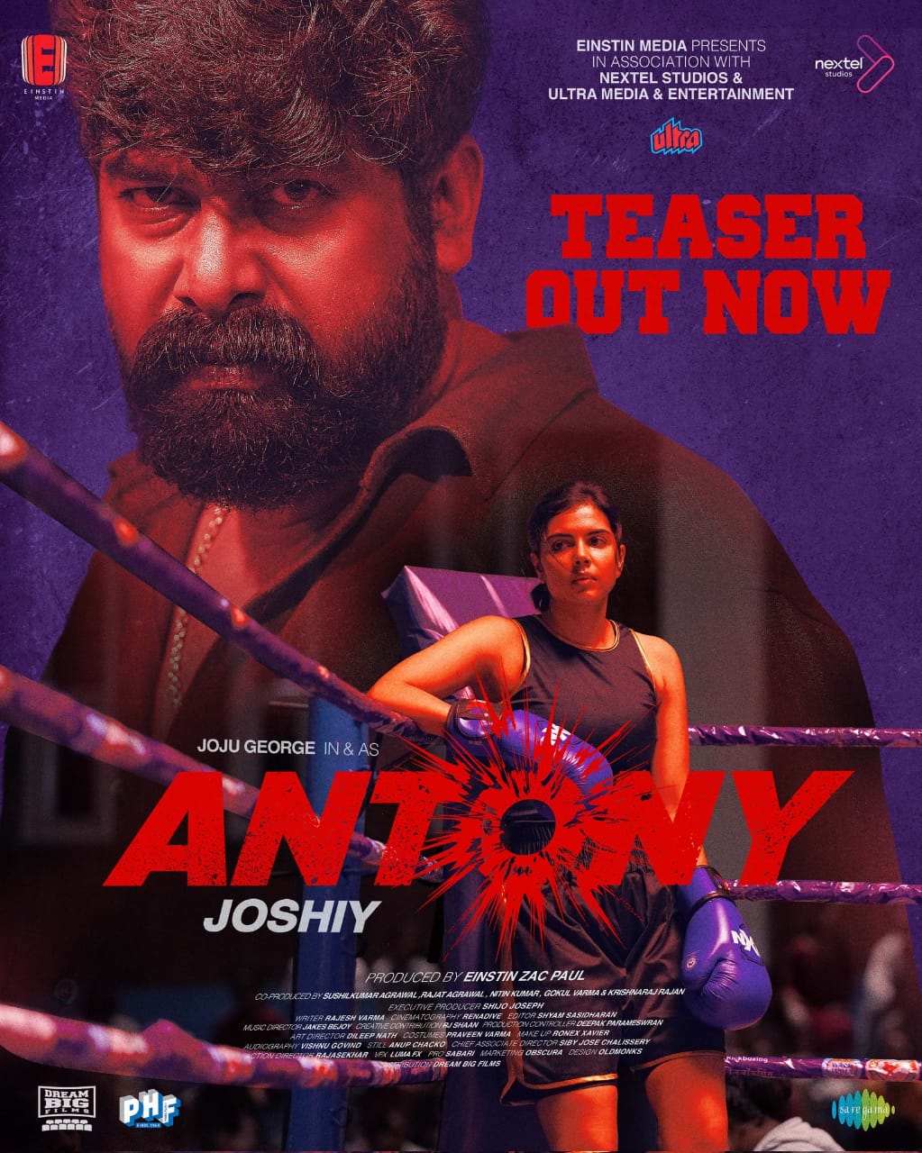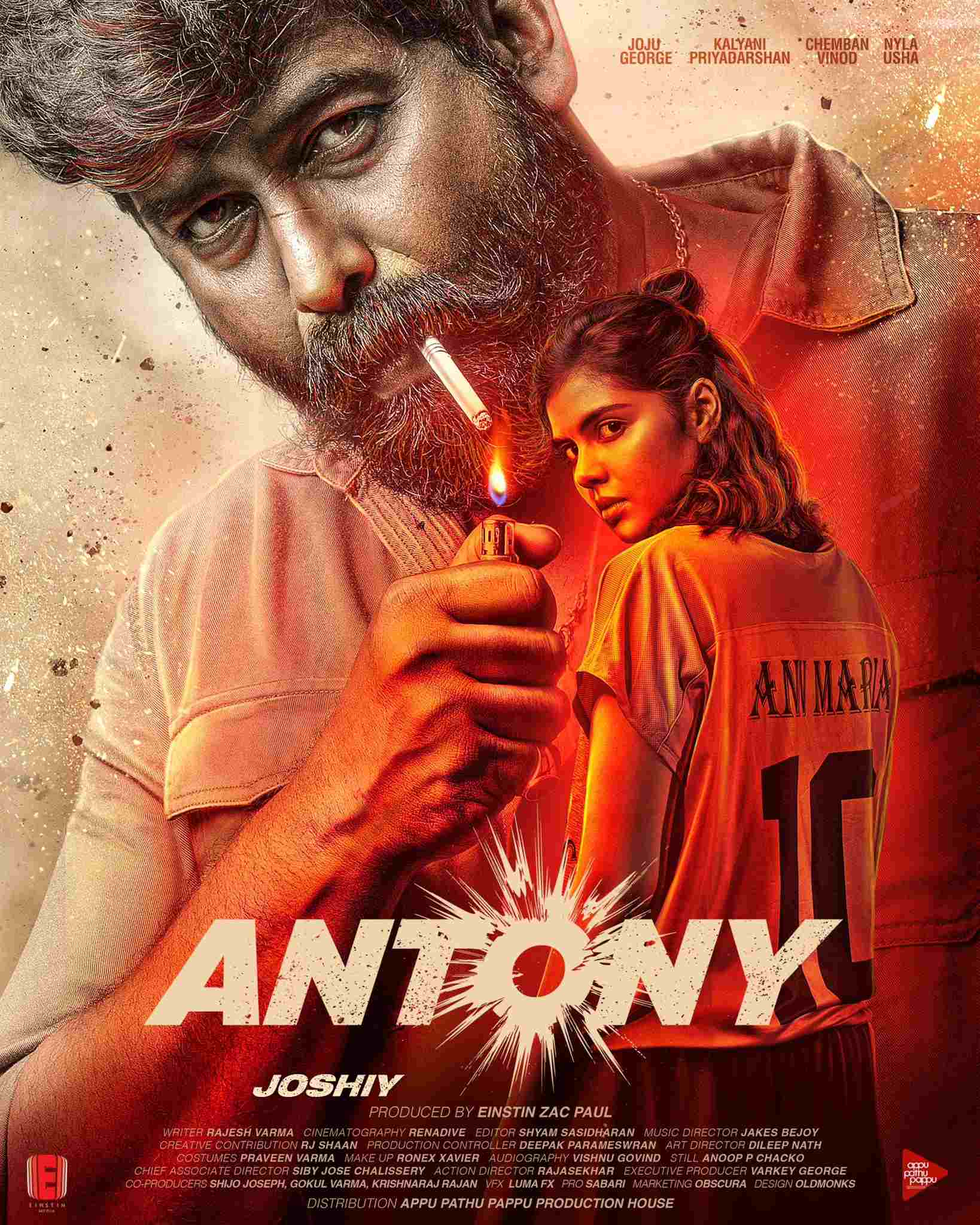 Starring a stellar cast including Joju George, Kalyani Priyadarsan, Chemban Vinod Jose, and Nyla Usha, 'Antony is set to release in Malayalam, Hindi, Tamil, and Telugu under the banners of Einstin Media, Nextel Studio, and Ultra Media Entertainments. The overseas rights of the film is bagged by Phars Filmco Motion Pictures.